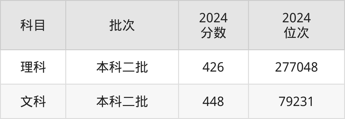 从2024年新乡工程学院在河南省内的录取分数线来看,本科批录取分数线都在420分以上,录取分数线最高的是文科,2024年最低分为448分;录取分数线最低的是理科,2024年最低分为426分。
