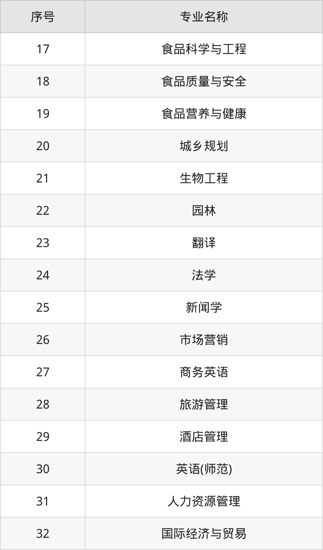 历史类(文科)本科招生专业:翻译、法学、新闻学、市场营销、商务英语、旅游管理、酒店管理、英语(师范)、人力资源管理、国际经济与贸易等。
