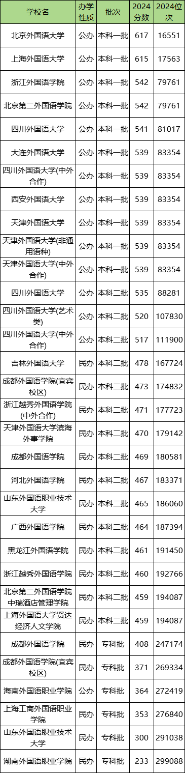 篇幅有限,下文仅为大家展示了外国语大学录取分数线排名榜单: