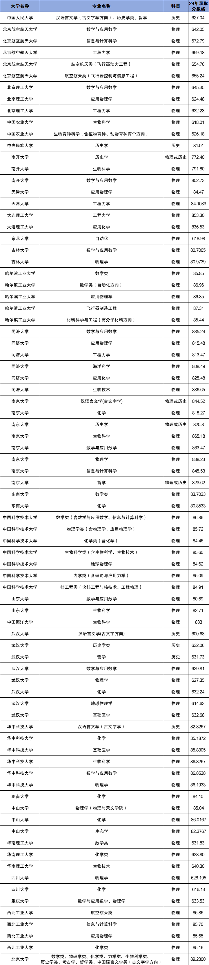 二、2024年强基计划入围和录取分数