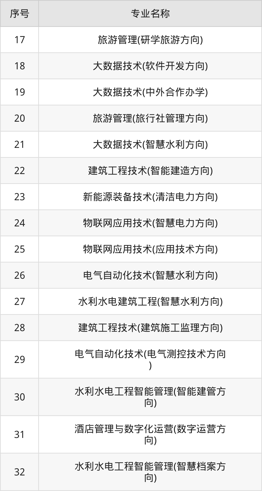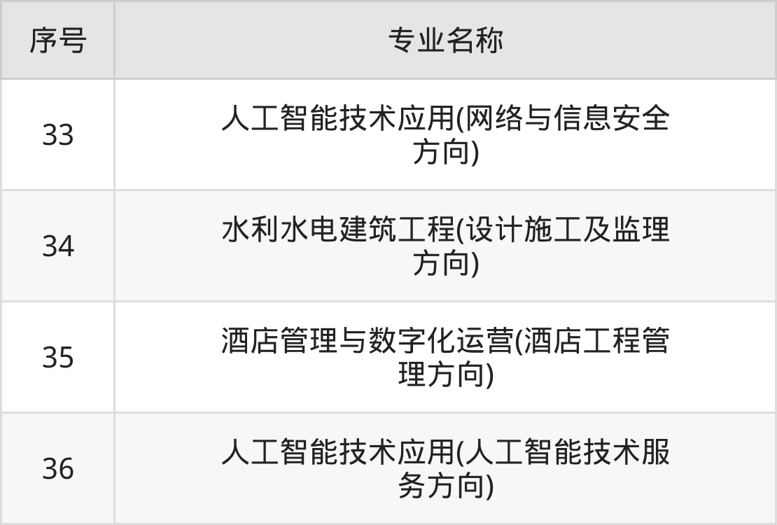 目前,贵州水利水电职业技术学院公布了2024年专科招生专业,共36个。
