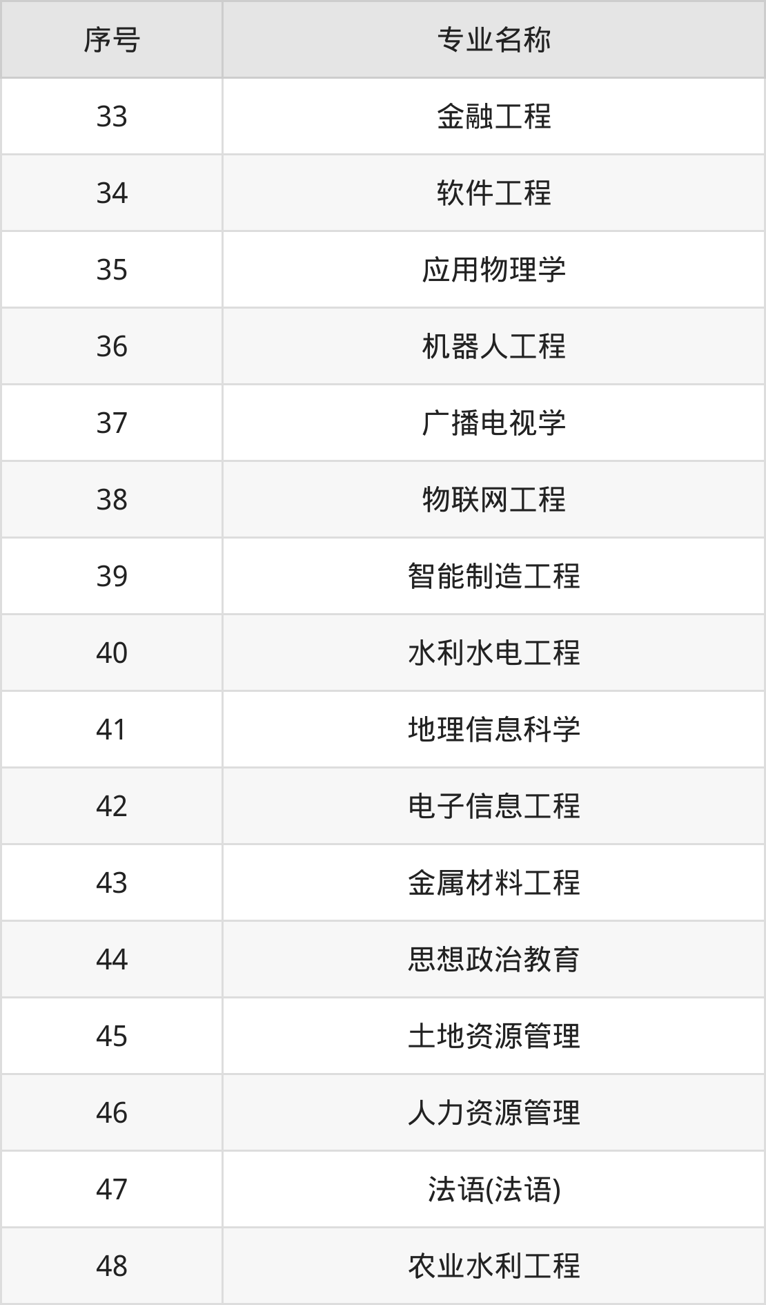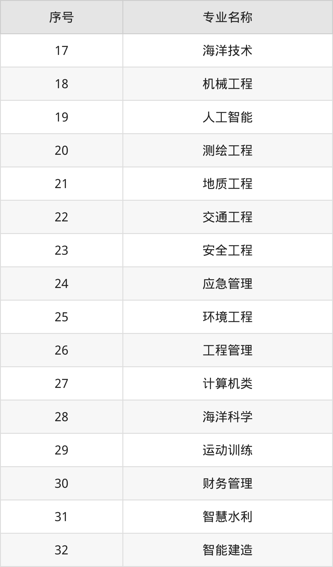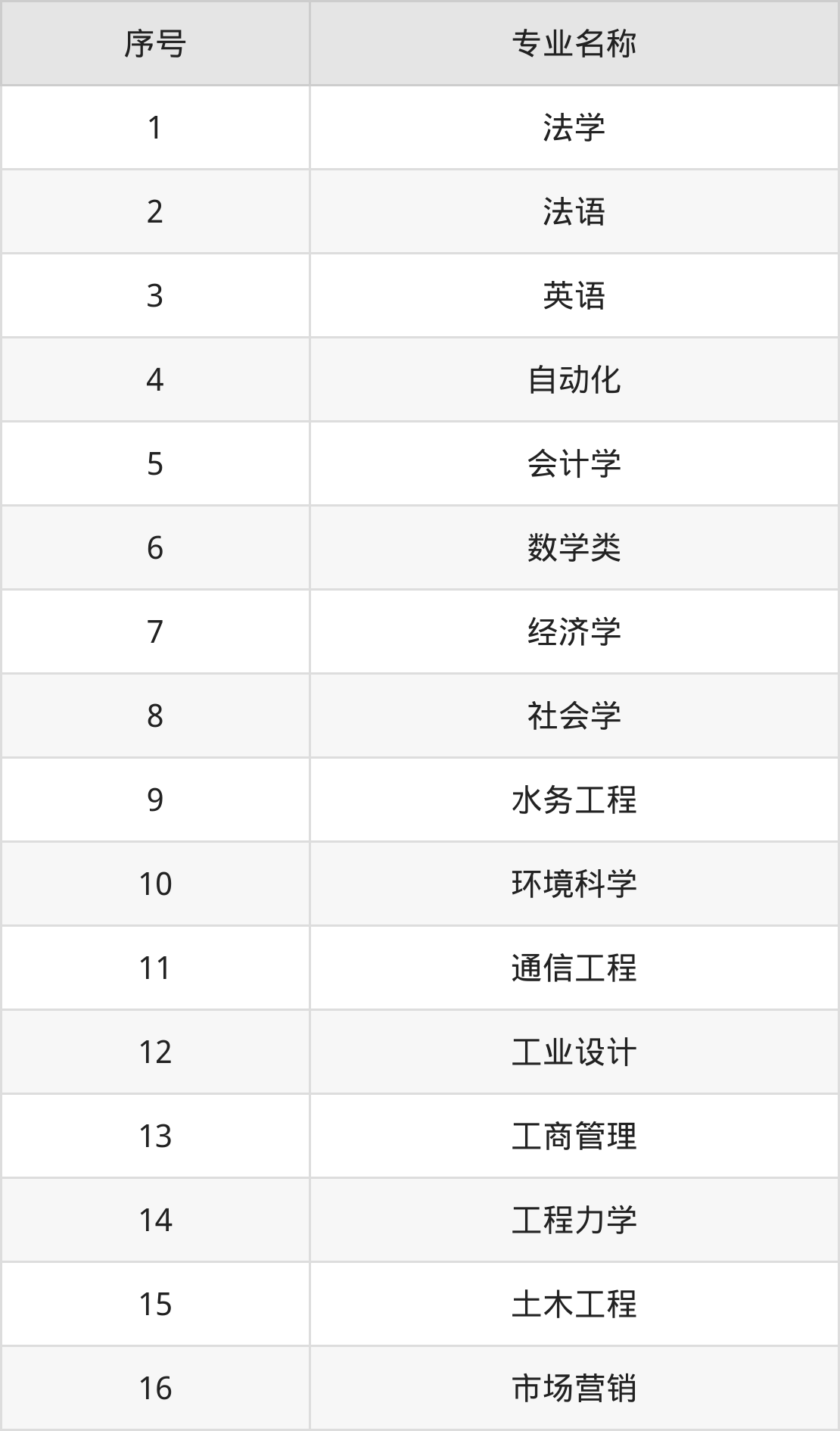 物理类(理科)本科招生专业:法学、自动化、数学类、会计学、人工智能、环境工程、智慧水利、通信工程、软件工程、安全工程等。