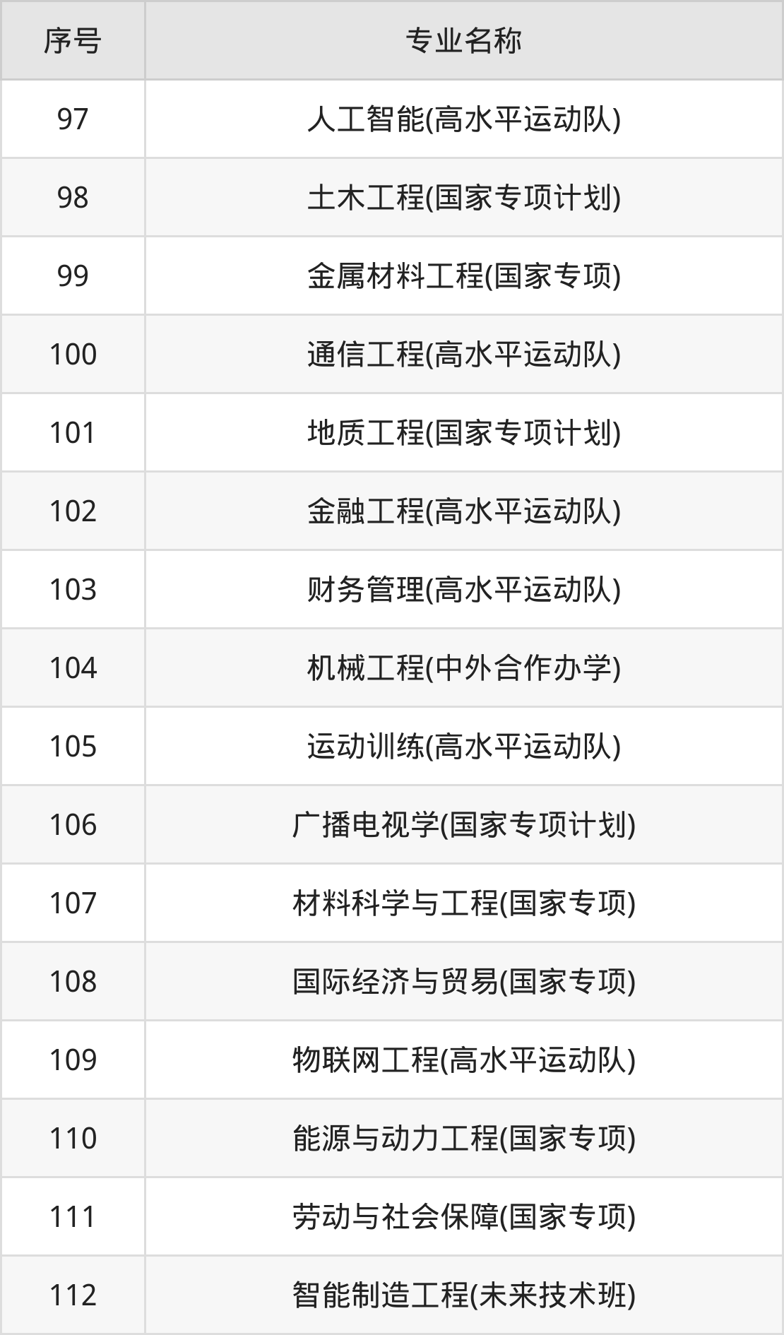 历史类(文科)本科招生专业:法学、法语、英语、经济学、会计学、社会学、财务管理、运动训练、金融工程、工商管理等。