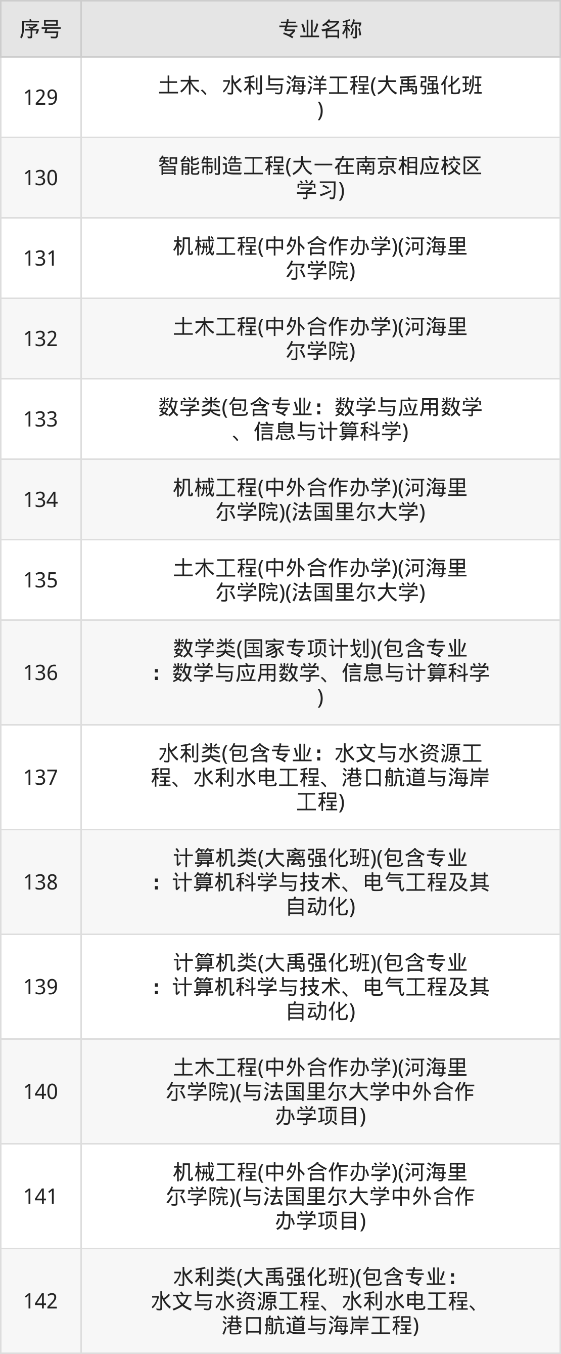 目前,河海大学公布了2024年本科招生专业,共142个。
