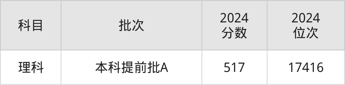 从2024年陆军装甲兵学院在内蒙古自治区内的录取分数线来看,本科批录取分数线都在510分以上,录取分数线最低的是理科,2024年最低分为517分。