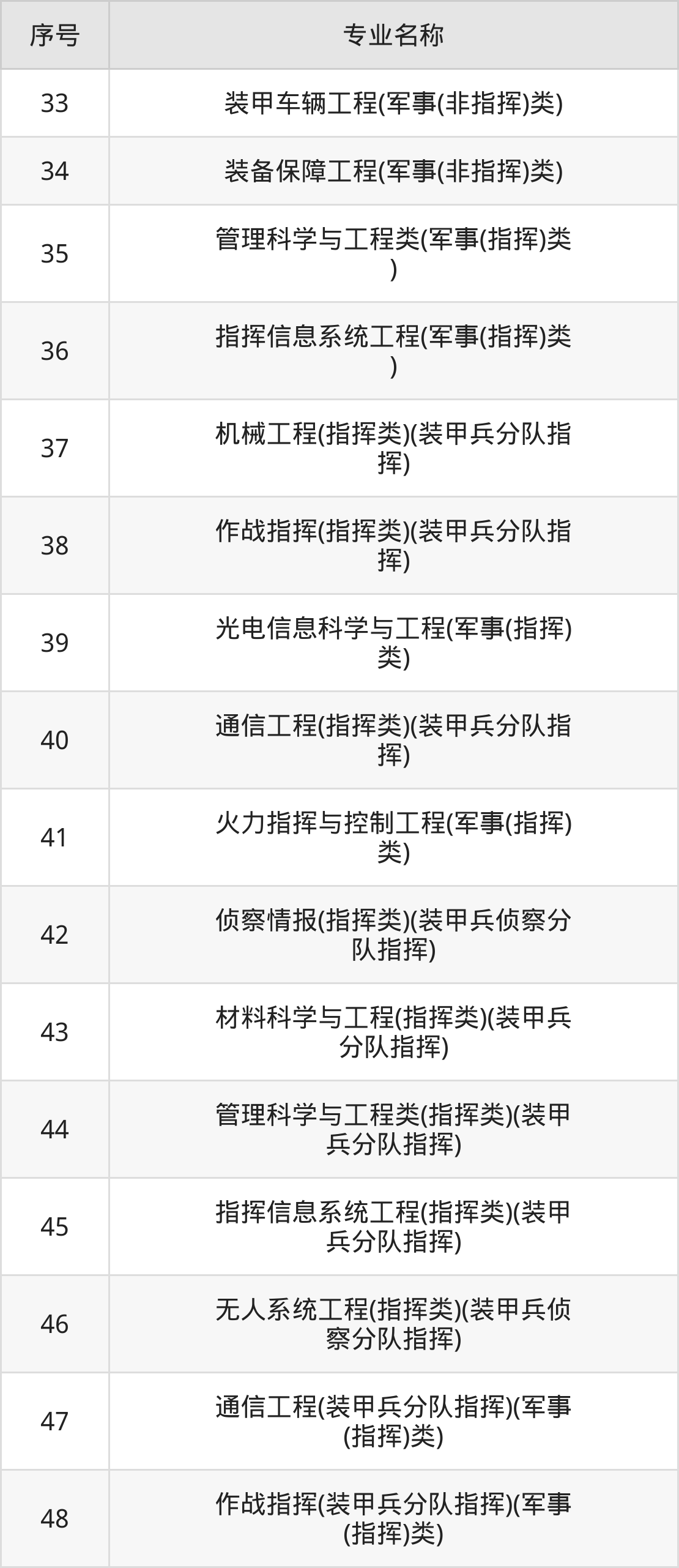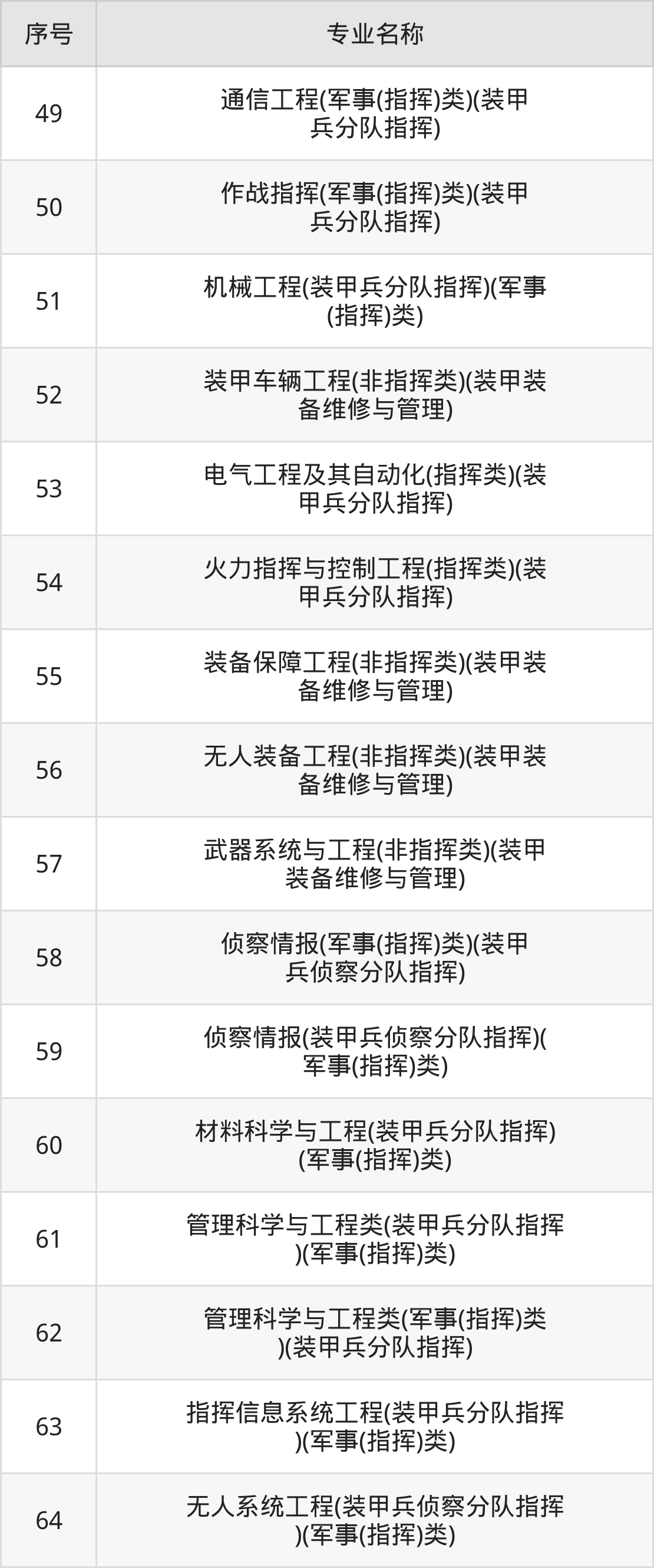 三、陆军装甲兵学院2024招生专业