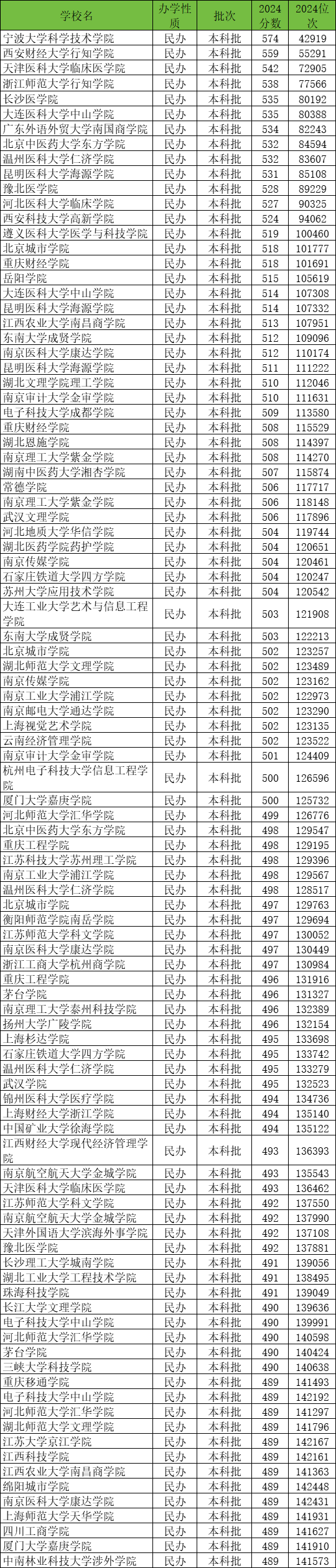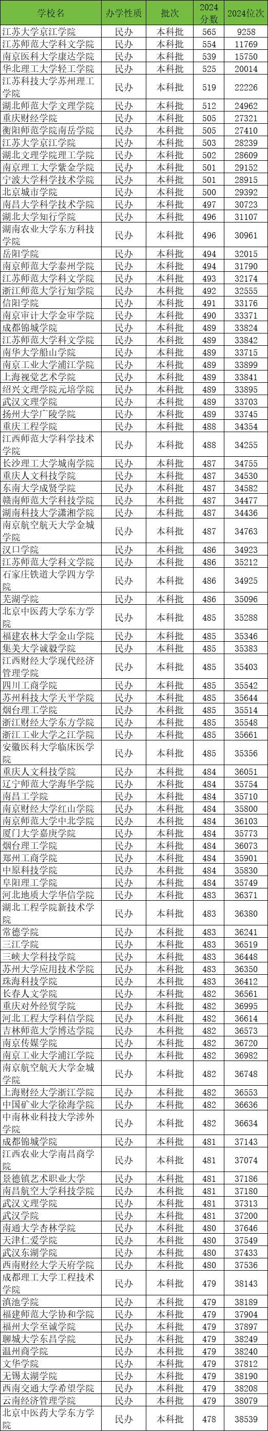 本文以安徽省为例,为大家介绍2024年民办本科大学录取分数线情况(篇幅有限,下面表格仅展示分数线排名前100的名单)。