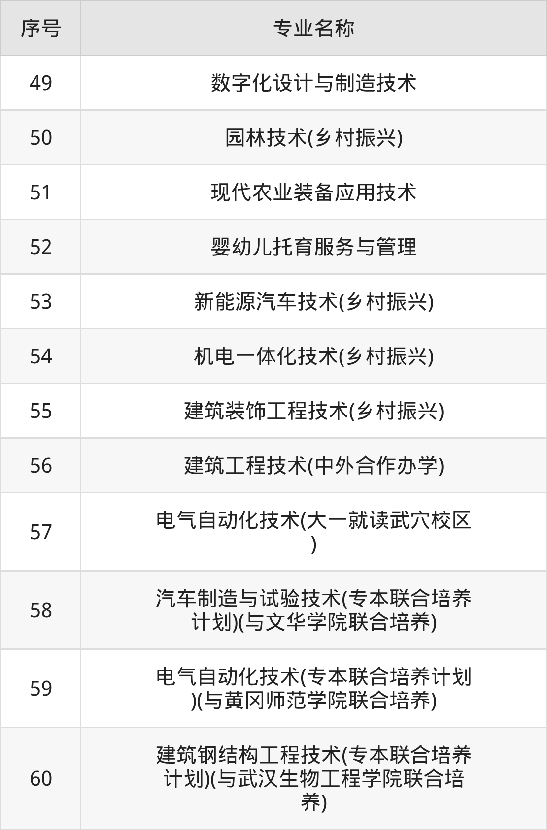 目前,黄冈职业技术大学公布了2025年本科招生专业,共10个;2025年专科招生专业为60个。