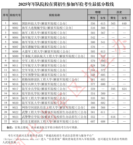 目前河北省暂未公布2025年军校录取分数线,待本网收集整理后,及时为大家更新于此。