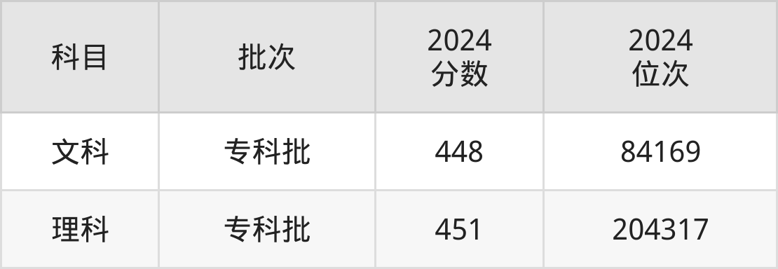 2024年四川司法警官职业学院在四川省内专科批的录取分数线都在440分以上,在文科的录取分数线为448分;理科的录取分数线为451分。