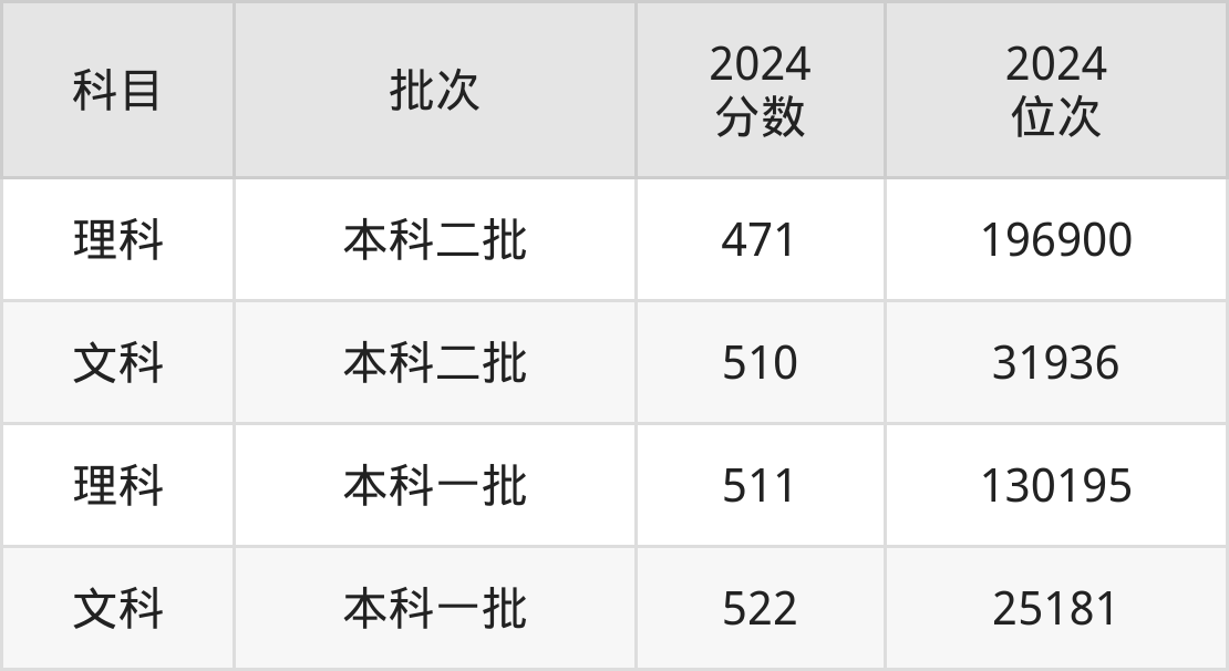 从2024年南阳师范学院在河南省内的录取分数线来看,本科批录取分数线都在470分以上,录取分数线最高的是文科,2024年最低分为522分;录取分数线最低的是理科,2024年最低分为471分。