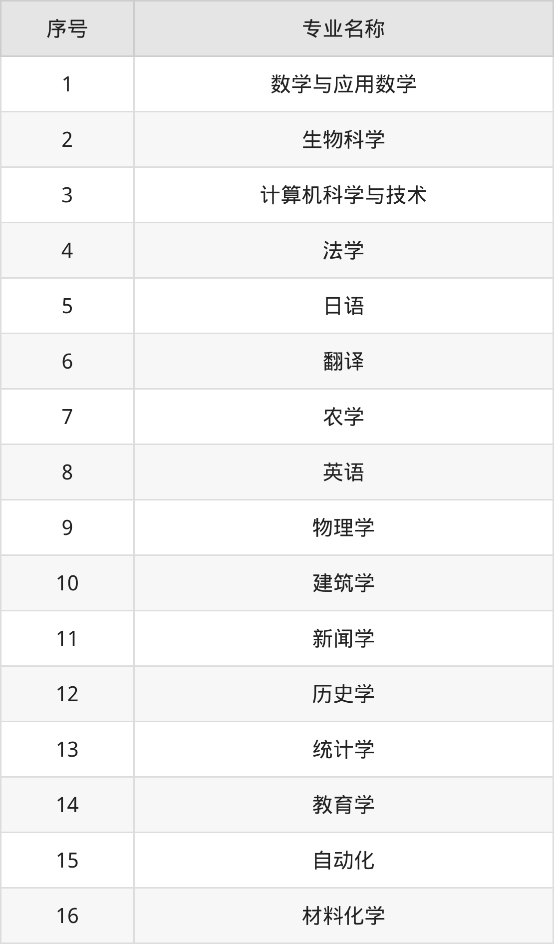 物理类(理科)本科招生专业:数学与应用数学、生物科学、计算机科学与技术、日语、翻译、农学、法学、统计学、新闻学、物理学等。