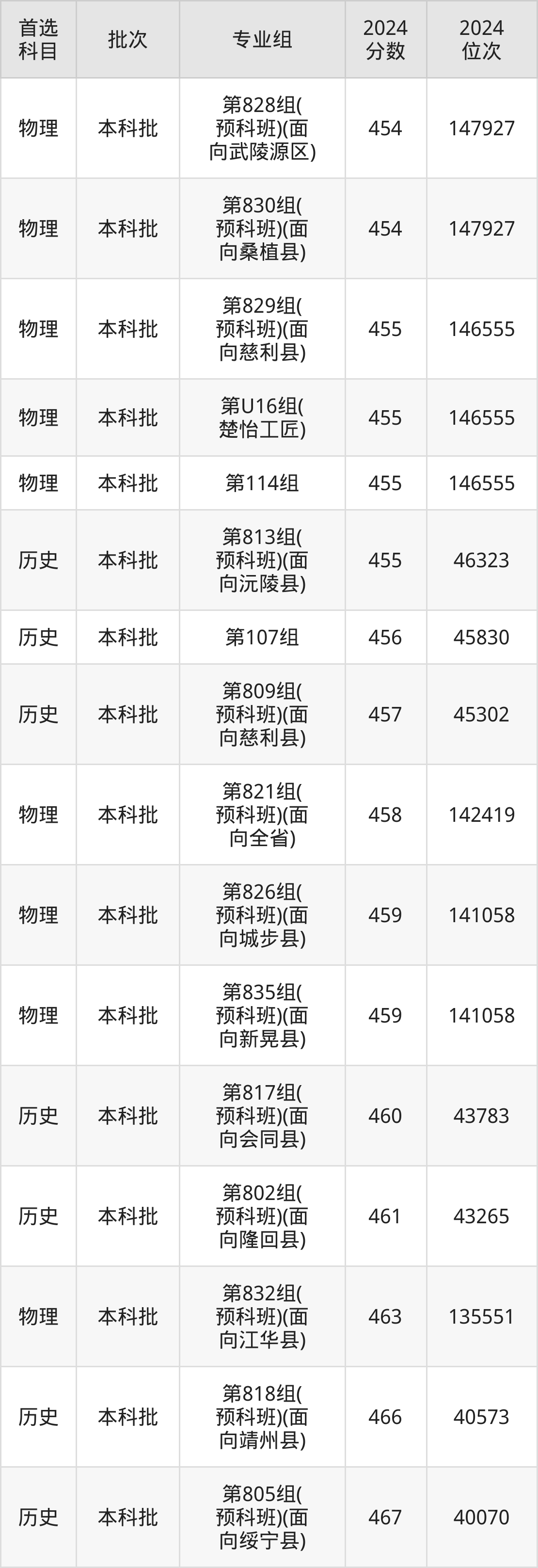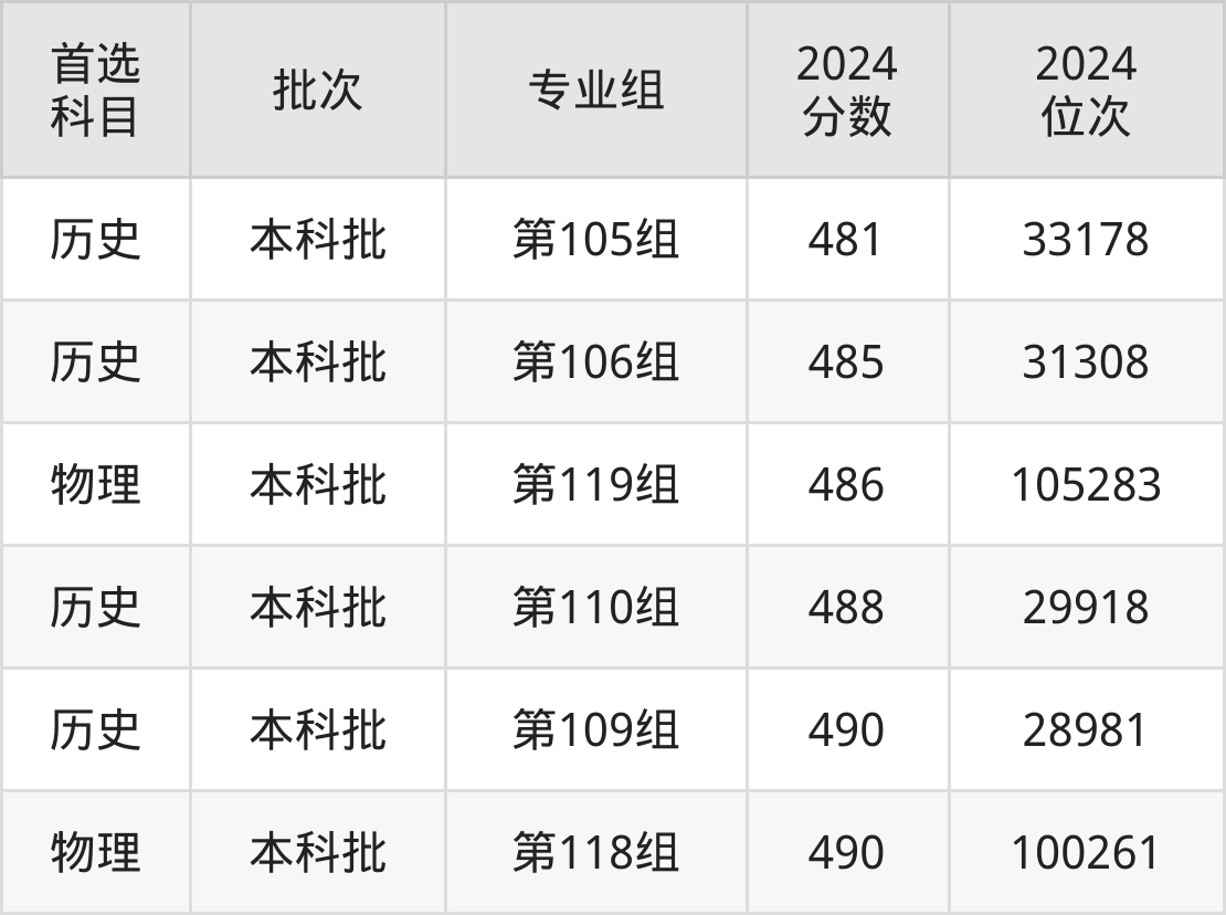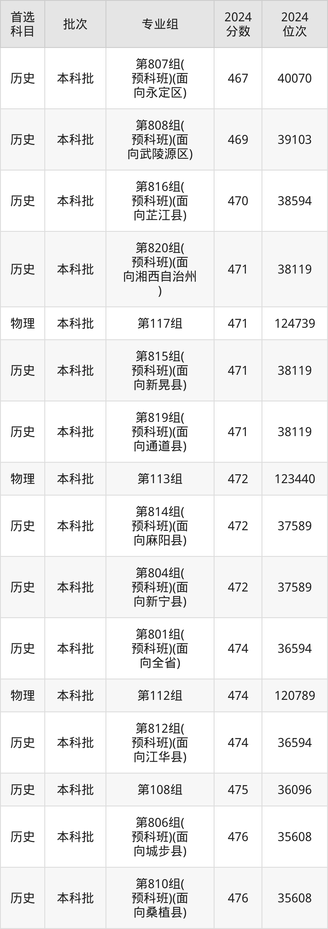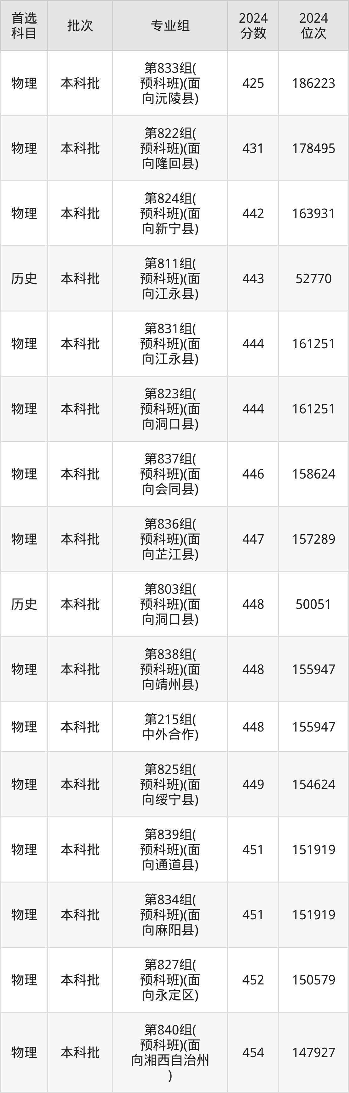 从2024年邵阳学院在湖南省内的录取分数线来看,本科批录取分数线都在420分以上,录取分数线最高的是第118组,2024年最低分为490分;录取分数线最低的是第833组(预科班)(面向沅陵县),2024年最低分为425分。