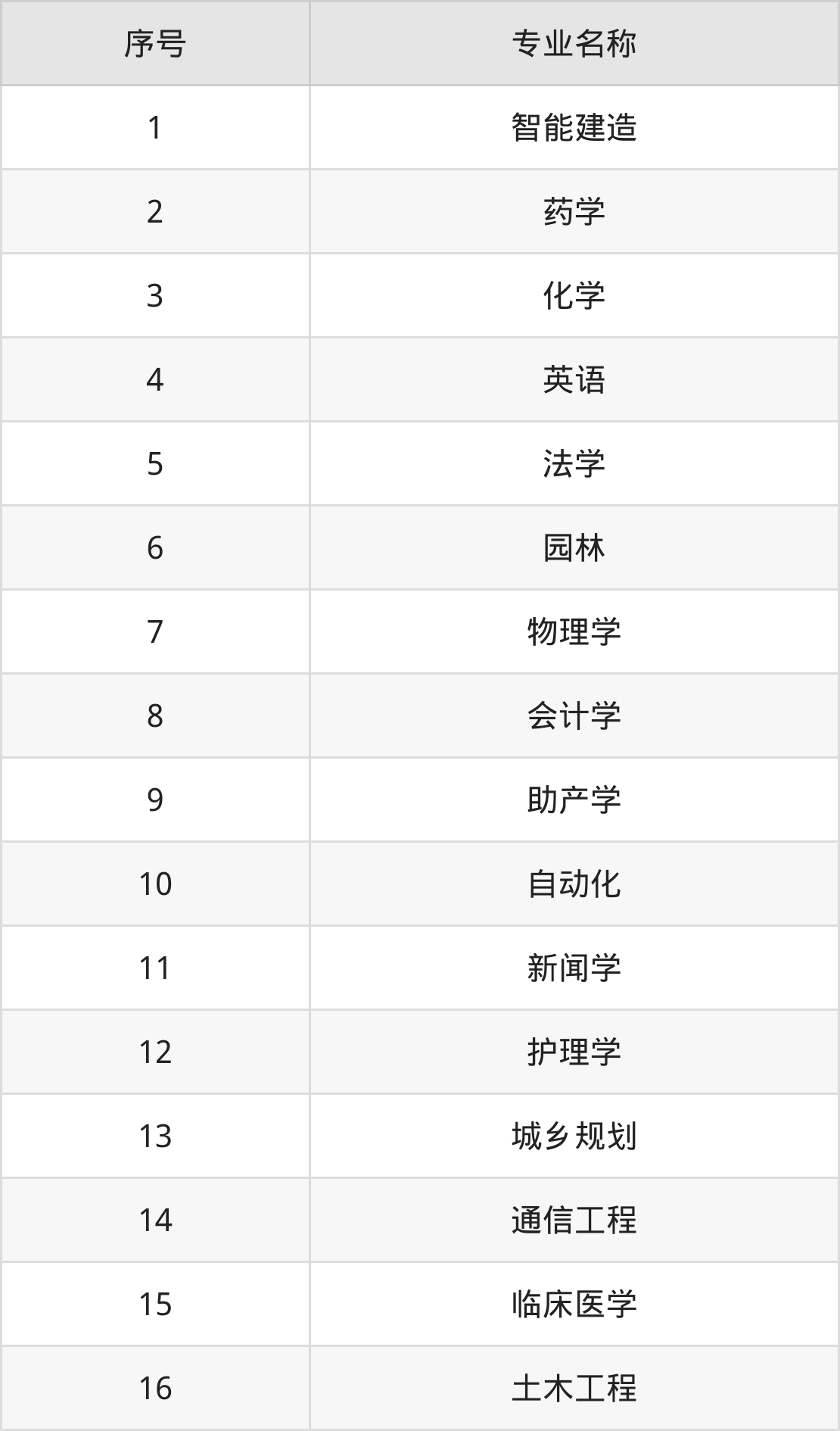 物理类(理科)本科招生专业:智能建造、药学、法学、园林、新闻学、会计学、助产学、自动化、护理学、金融工程等。