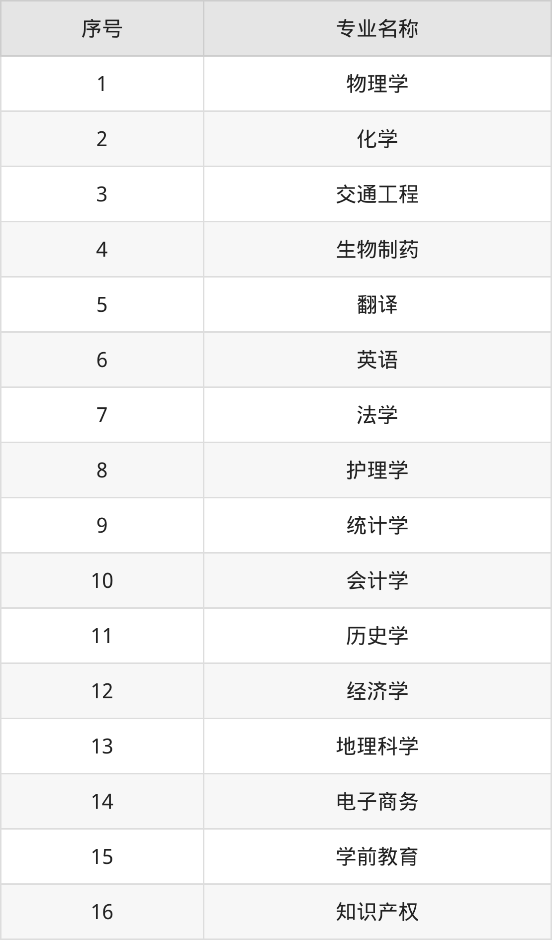 物理类(理科)本科招生专业:物理学、化学、交通工程、生物制药、法学、翻译、护理学、统计学、会计学、经济学等。