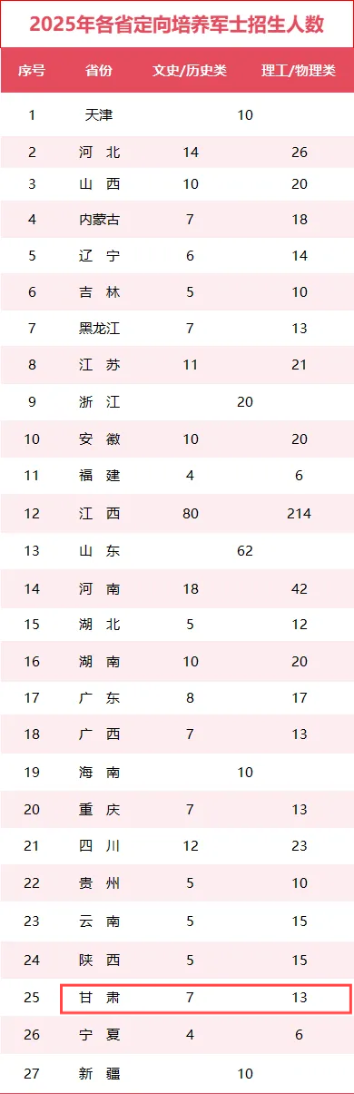 一、2025甘肃定向士官招生计划