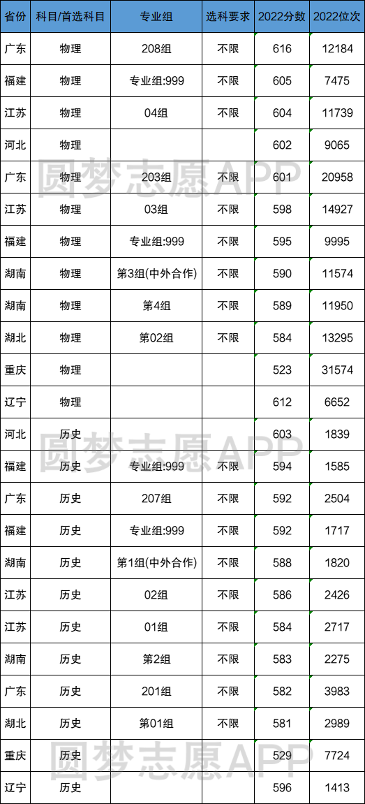 在采取“3+1+2”模式的8个省份中,西南政法大学在首选物理的批次中录取分数最高的是广东(616分,12184名),录取分数最低的是重庆(523分,31574名)。首选历史的录取分数线最高的是河北(603分,1839名),录取分数最低的是重庆(529分,7724名)
