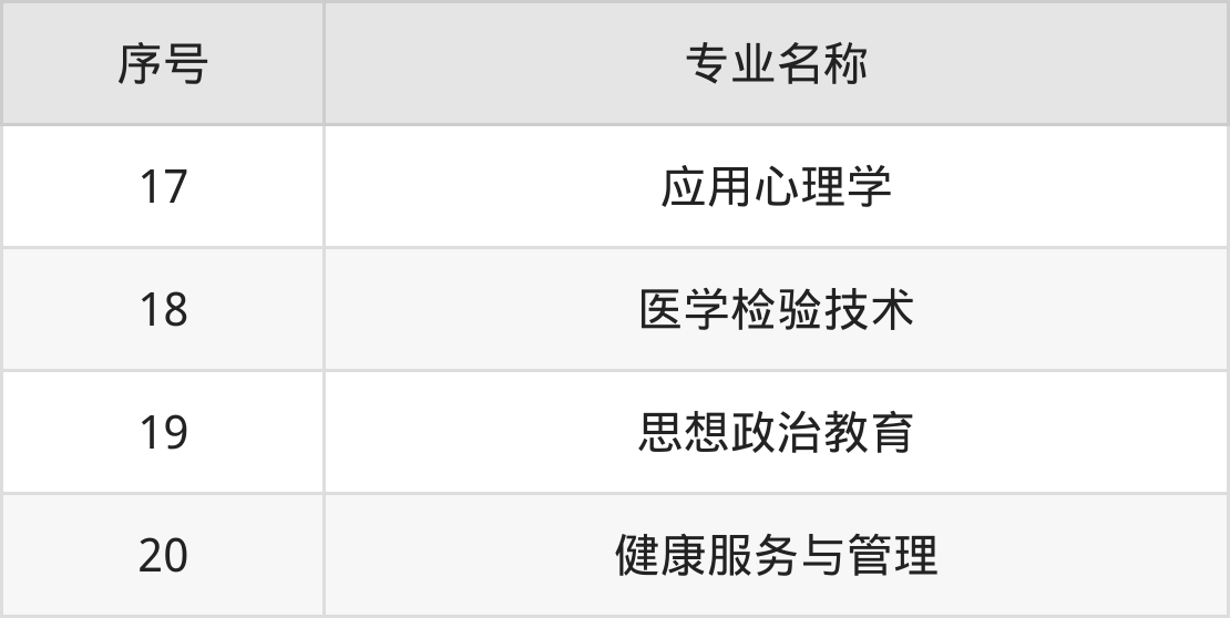 历史类(文科)本科招生专业:法学、护理学、运动康复、创业管理、应用心理学、思想政治教育、健康服务与管理。
