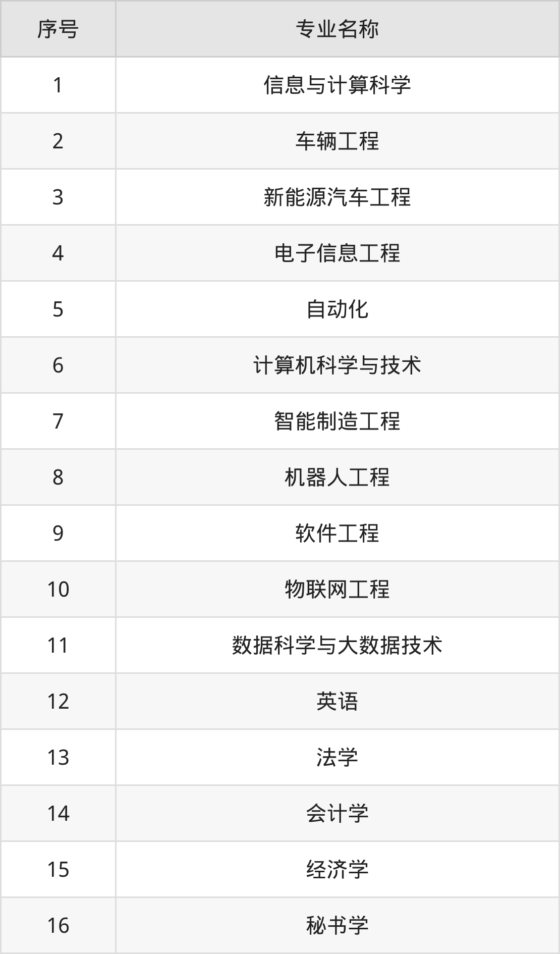 物理类(理科)本科招生专业:信息与计算科学、车辆工程、新能源汽车工程、电子信息工程、自动化、计算机科学与技术、智能制造工程、机器人工程、软件工程、物联网工程等。