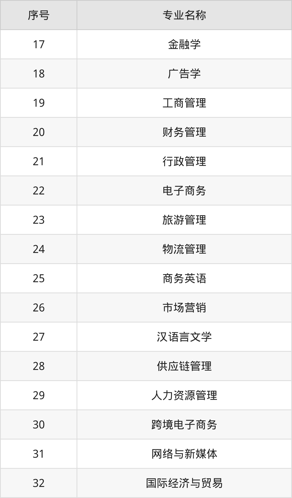 历史类(文科)本科招生专业:法学、英语、秘书学、广告学、会计学、经济学、金融学、电子商务、行政管理、旅游管理等。