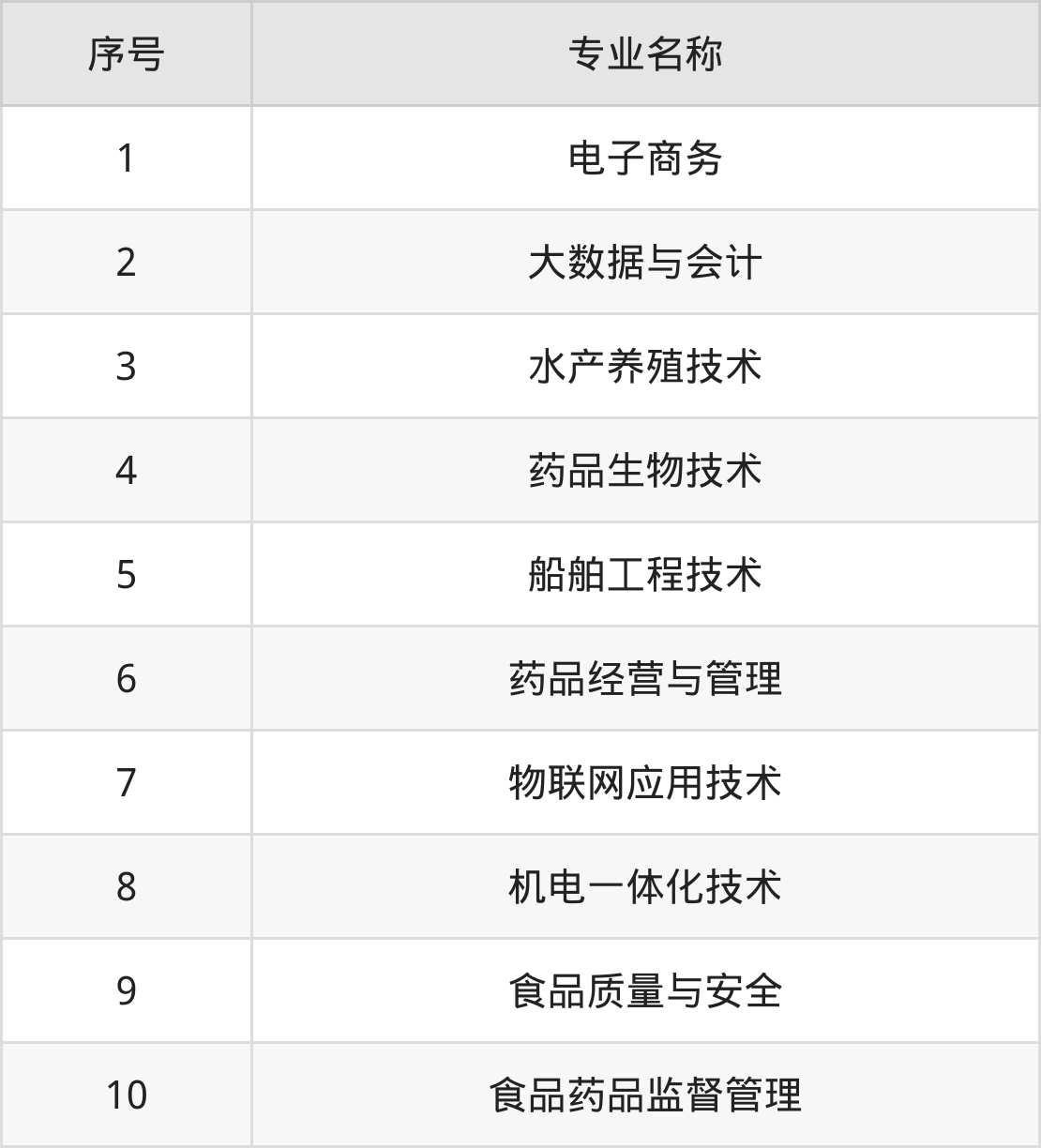 目前,威海海洋职业学院公布了2024年专科招生专业,共10个。