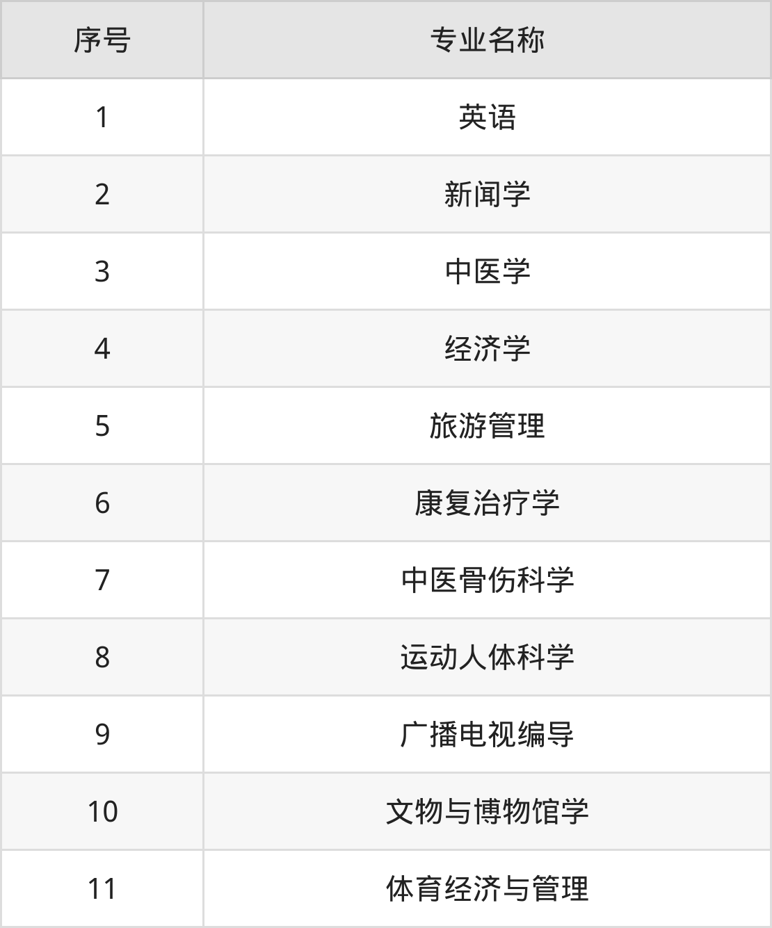 目前,成都体育学院公布了2024年本科招生专业,共11个。