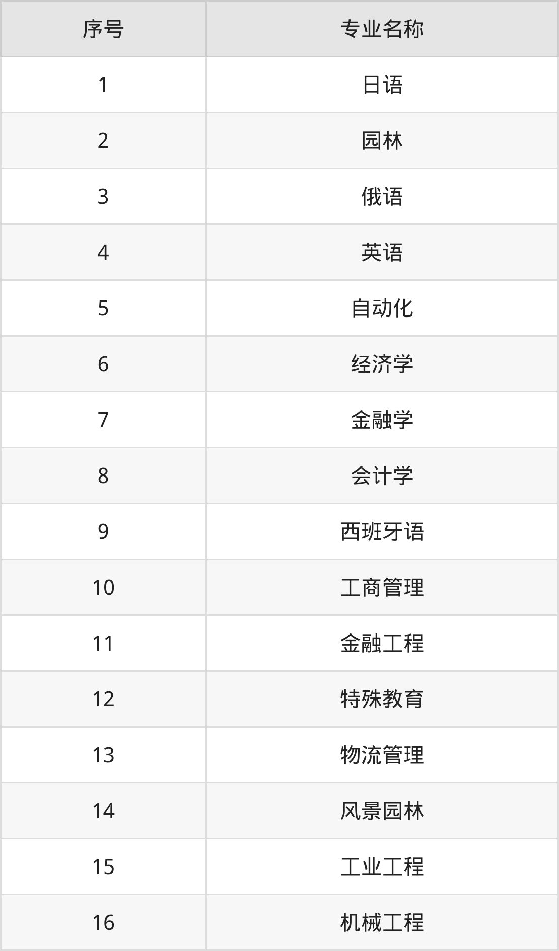 物理类(理科)本科招生专业:日语、俄语、园林、英语、会计学、经济学、金融学、自动化、金融工程、旅游管理等。