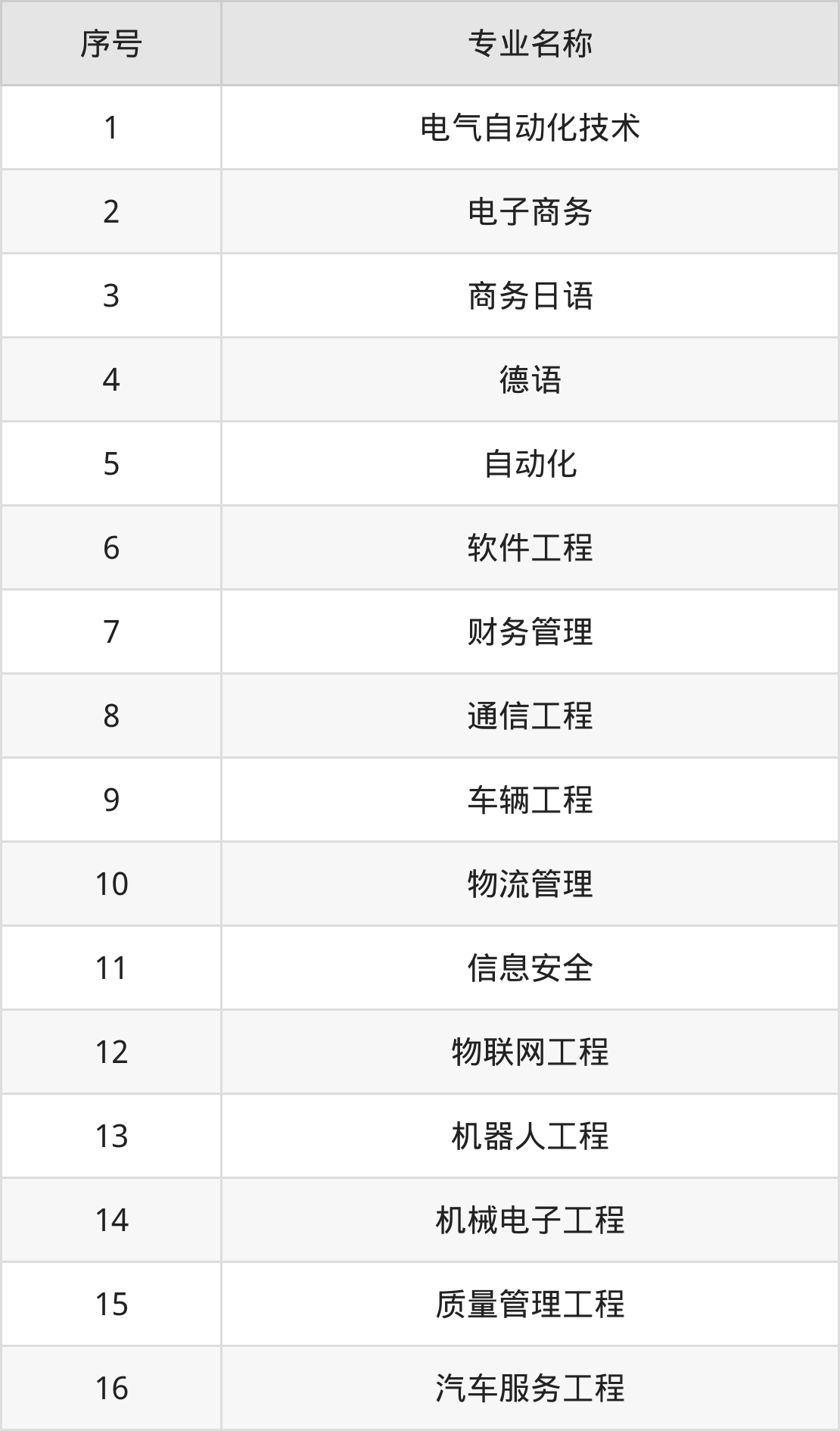 物理类(理科)本科招生专业:自动化、通信工程、信息安全、车辆工程、物流管理、软件工程、机器人工程、物联网工程、质量管理工程、金属材料工程等。