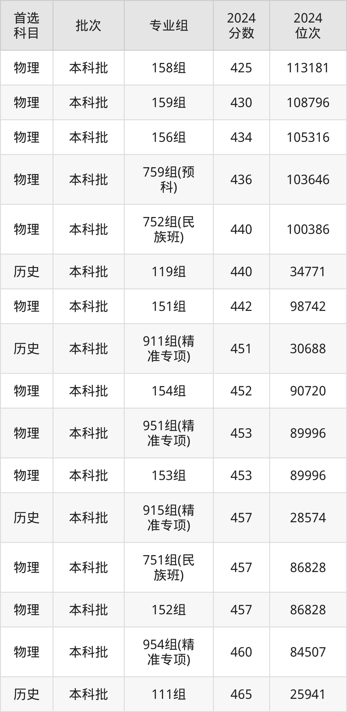 从2024年玉林师范学院在广西壮族自治区内的录取分数线来看,本科批录取分数线都在420分以上,录取分数线最高的是115组,2024年最低分为511分;录取分数线最低的是158组,2024年最低分为425分。