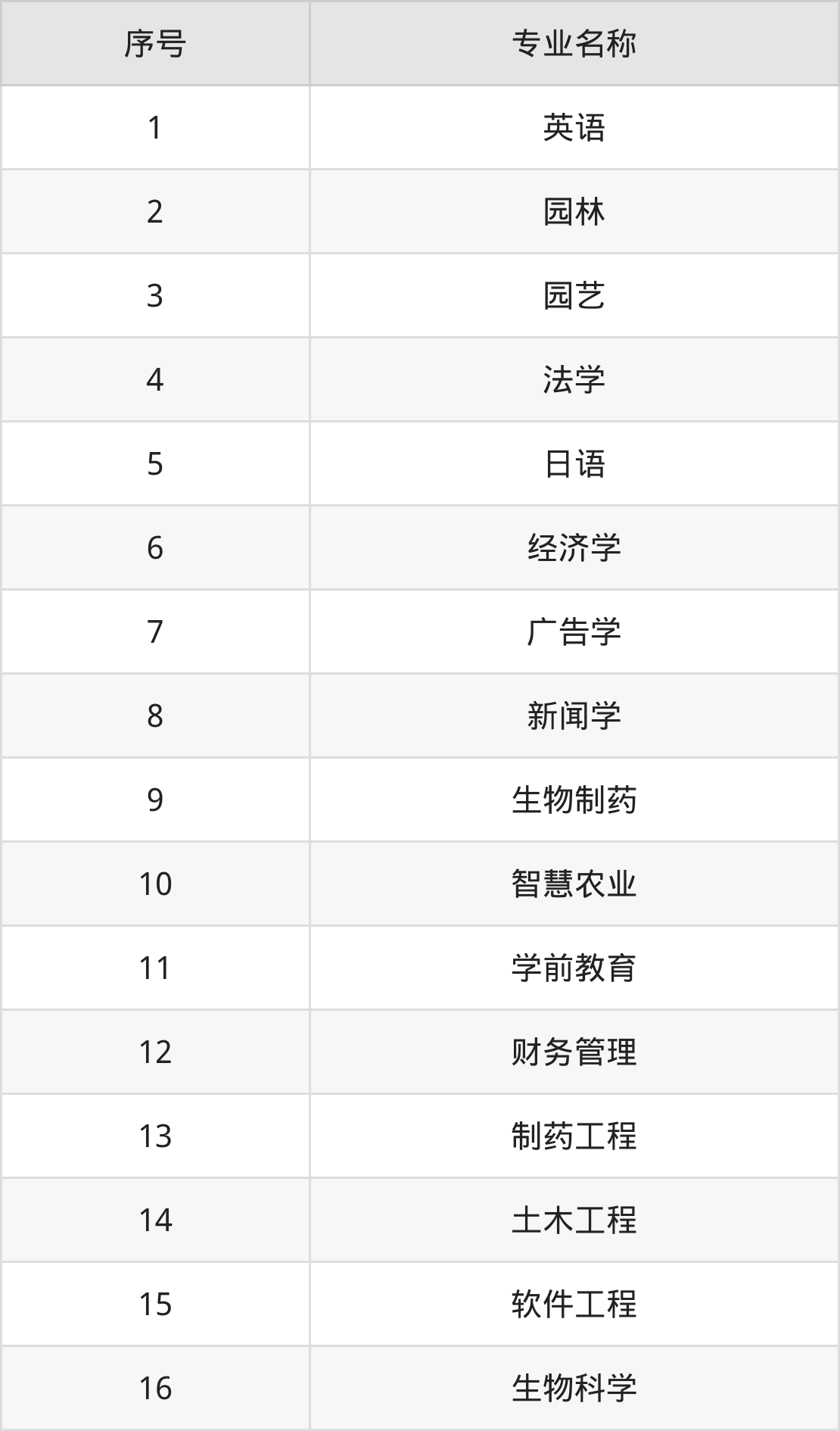 物理类(理科)本科招生专业:园艺、日语、法学、园林、新闻学、经济学、财务管理、生物制药、商务英语、信息安全等。