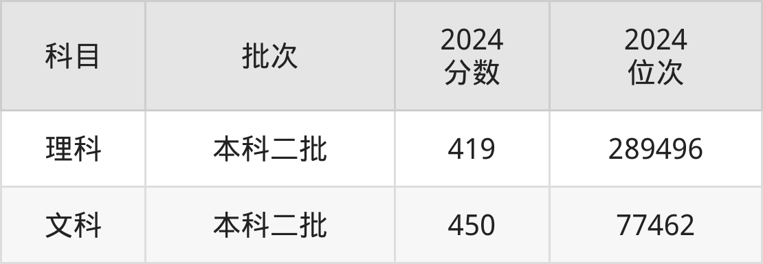 从2024年郑州工商学院在河南省内的录取分数线来看,本科批录取分数线都在410分以上,录取分数线最高的是文科,2024年最低分为450分;录取分数线最低的是理科,2024年最低分为419分。