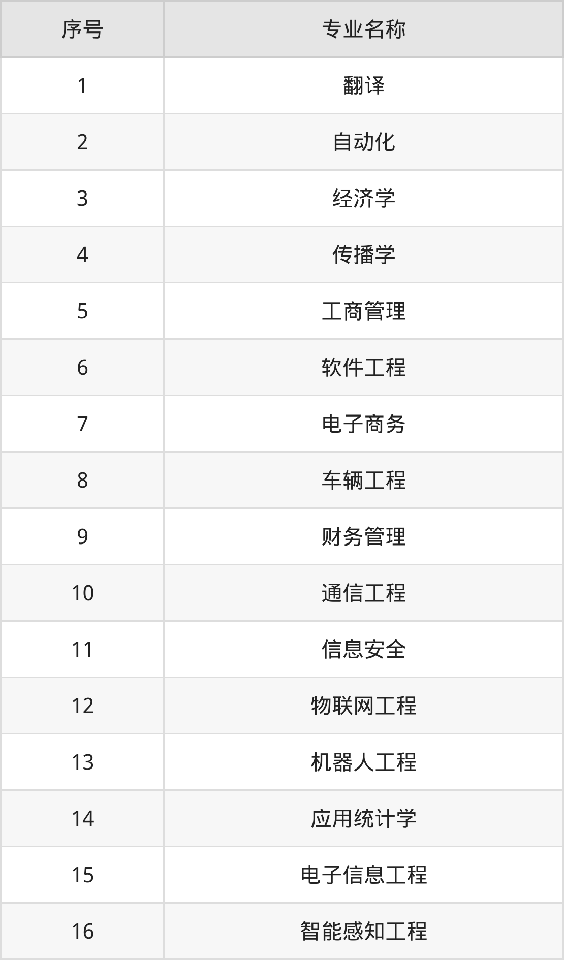 物理类(理科)本科招生专业:翻译、经济学、自动化、工商管理、信息安全、车辆工程、软件工程、电子商务、通信工程、财务管理等。