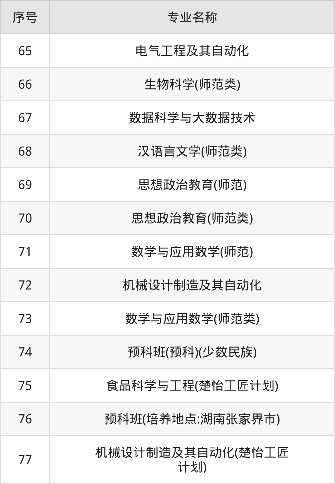目前,吉首大学公布了2024年本科招生专业,共77个。