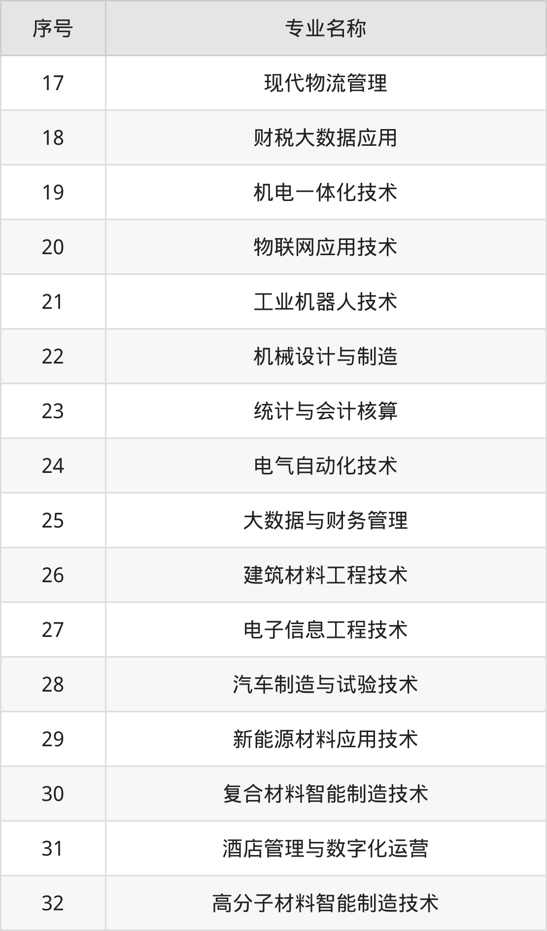 目前,绵阳职业技术学院公布了2024年专科招生专业,共33个。