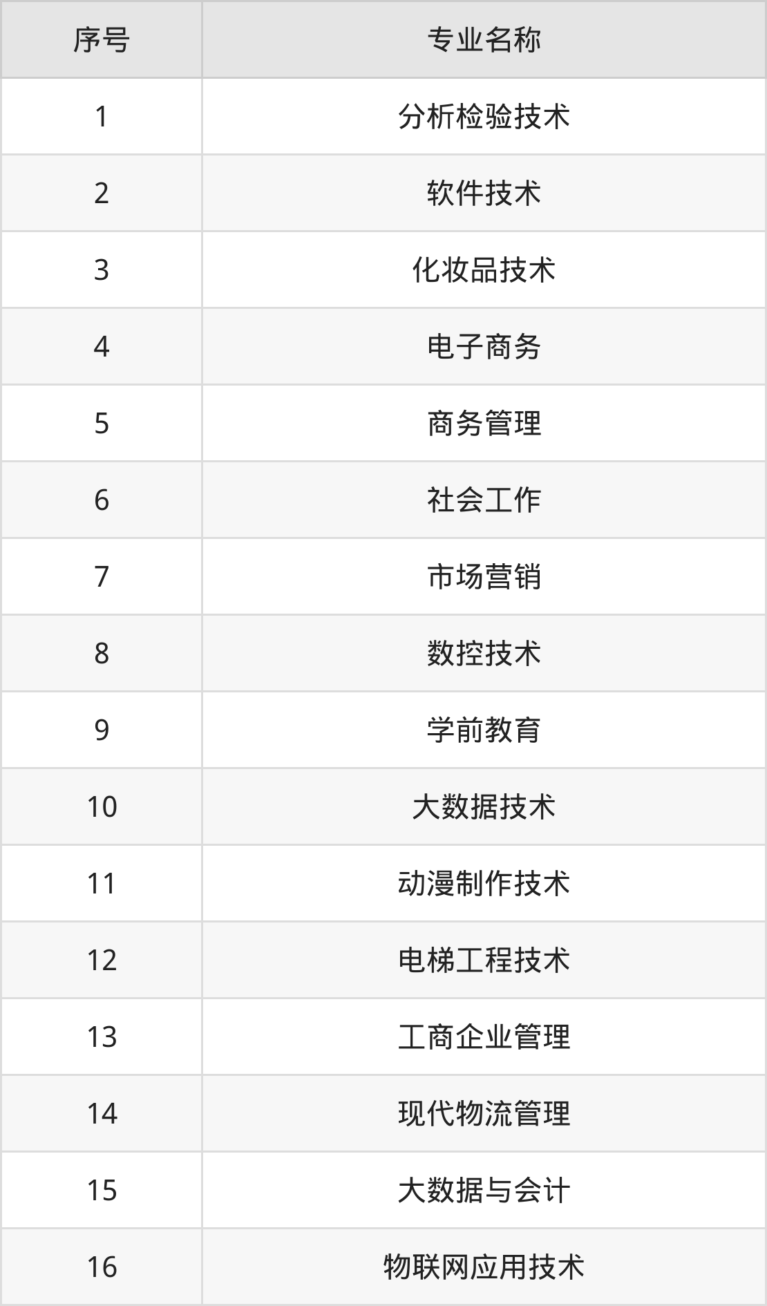 专科招生专业: