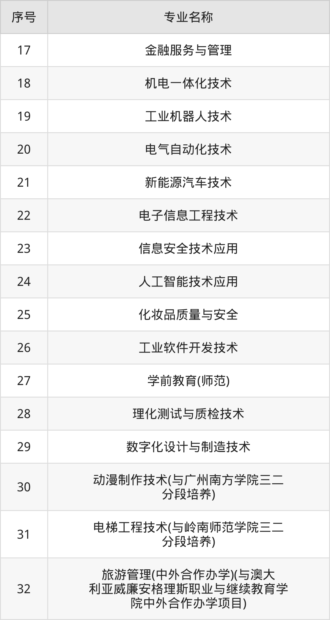 目前,中山职业技术学院公布了2024年专科招生专业,共32个。