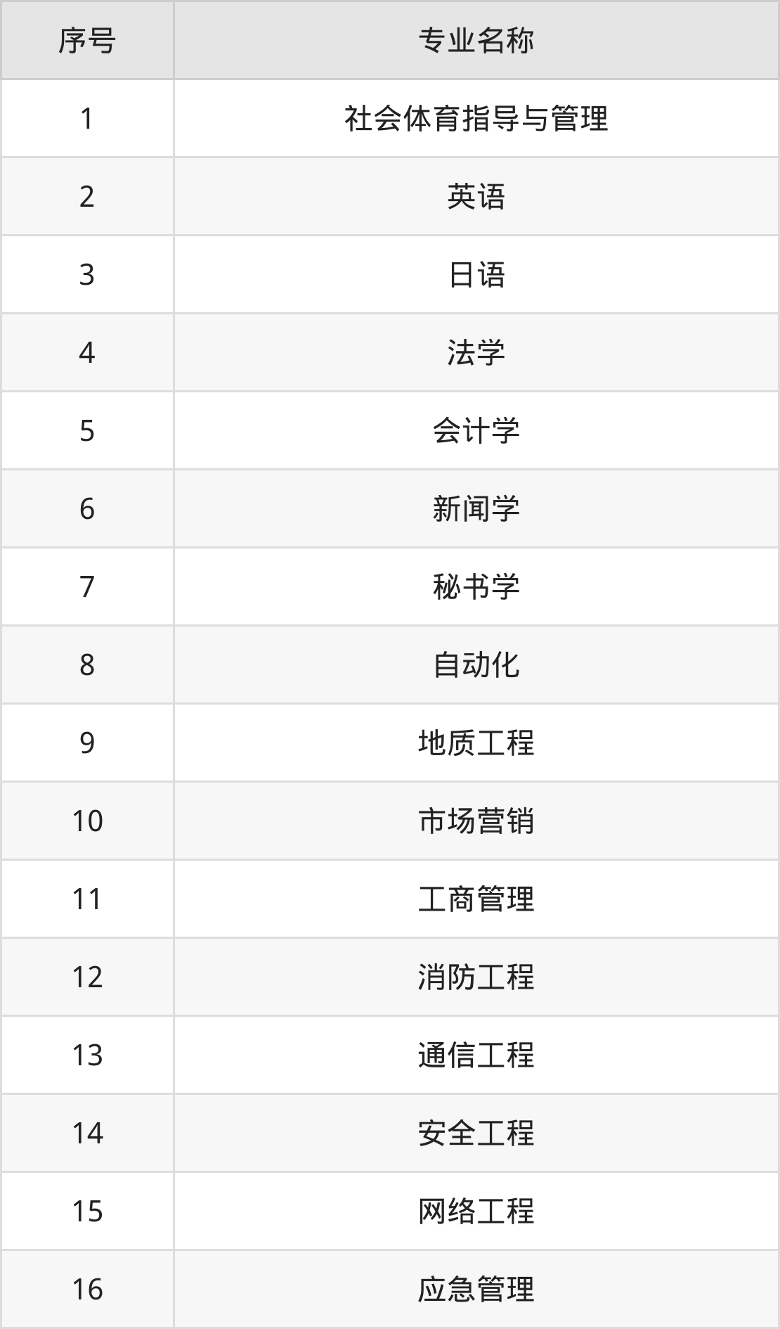物理类(理科)本科招生专业:自动化、网络工程、地质工程、软件工程、城市管理、环境工程、应用化学、通信工程、消防工程、应急管理等。