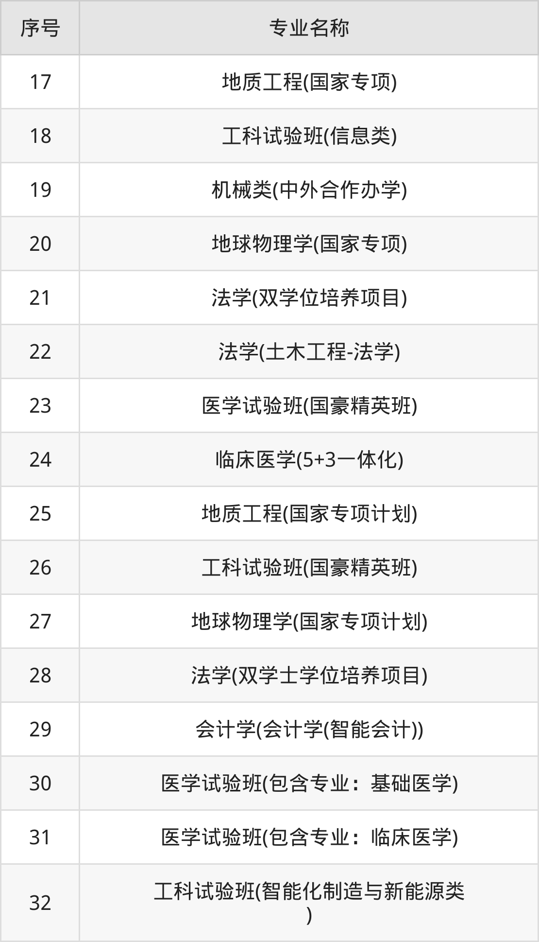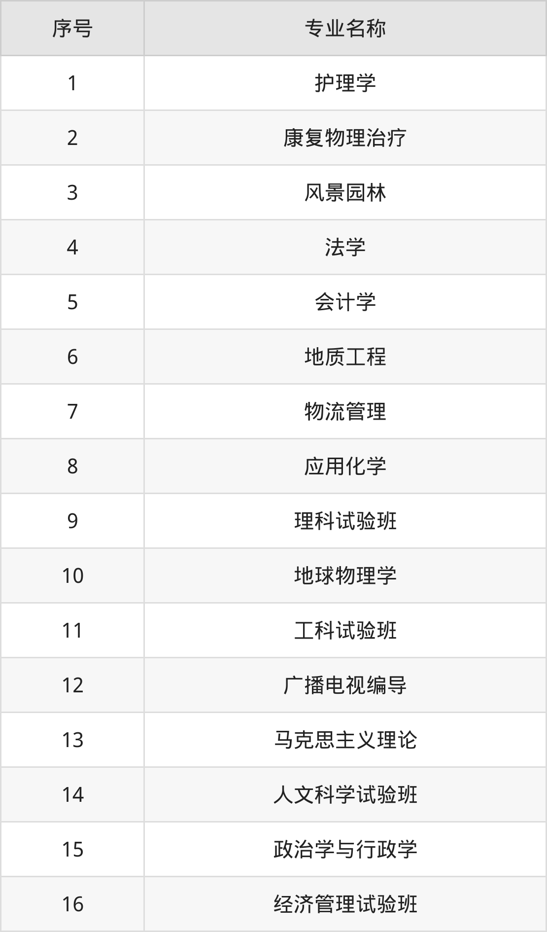 物理类(理科)本科招生专业:风景园林、应用化学、地质工程、地球物理学、理科试验班、工科试验班、经济管理试验班、地质工程(国家专项)、工科试验班(信息类)、机械类(中外合作办学)等。