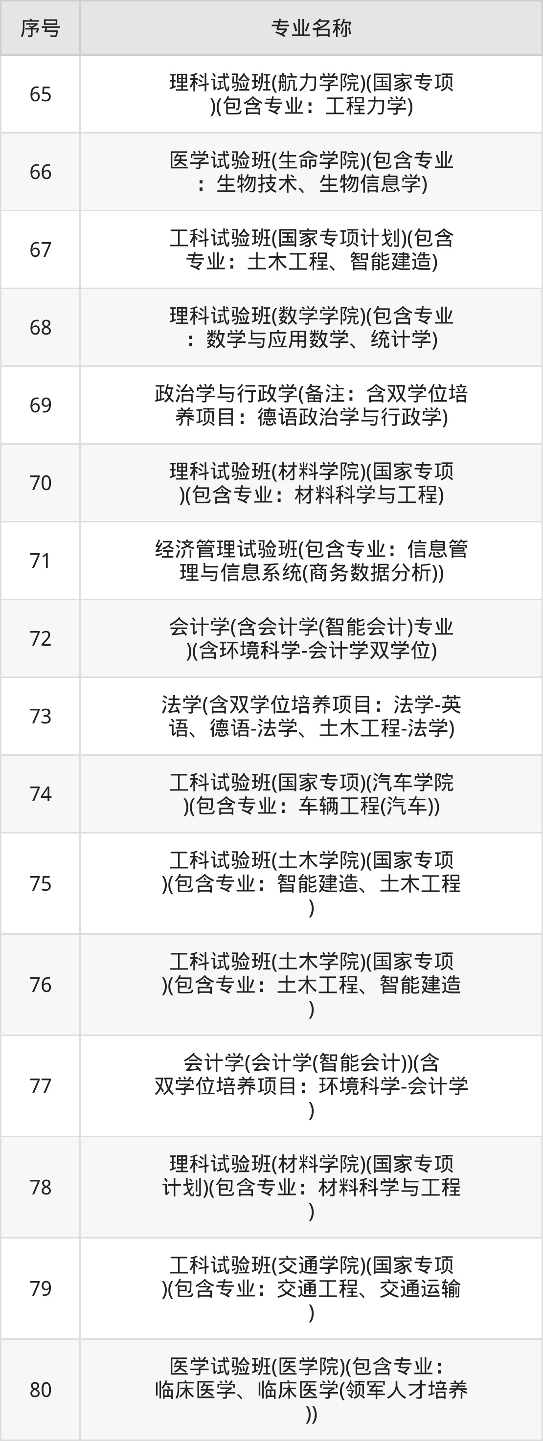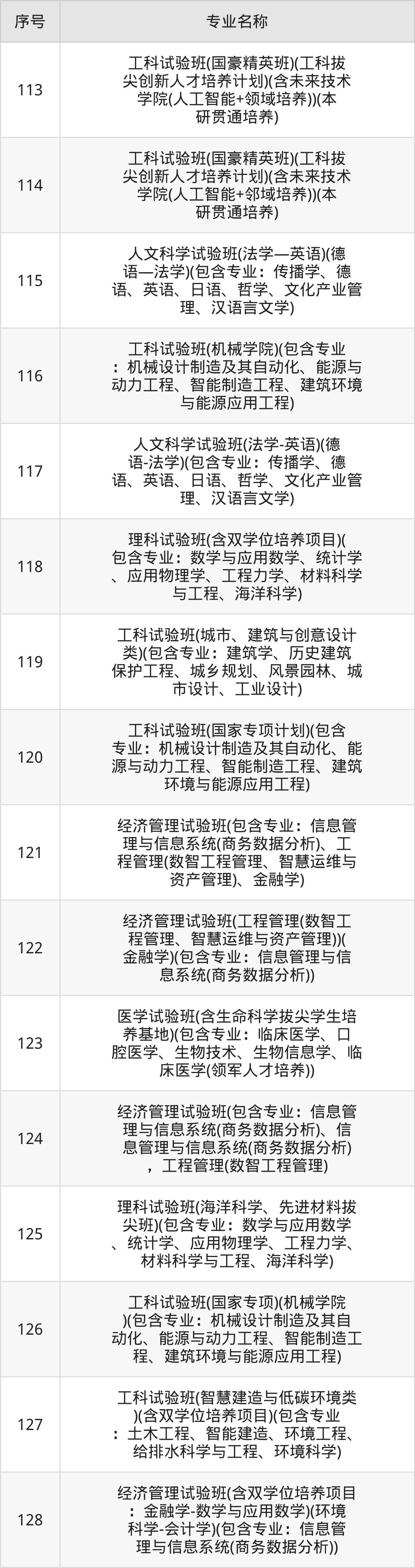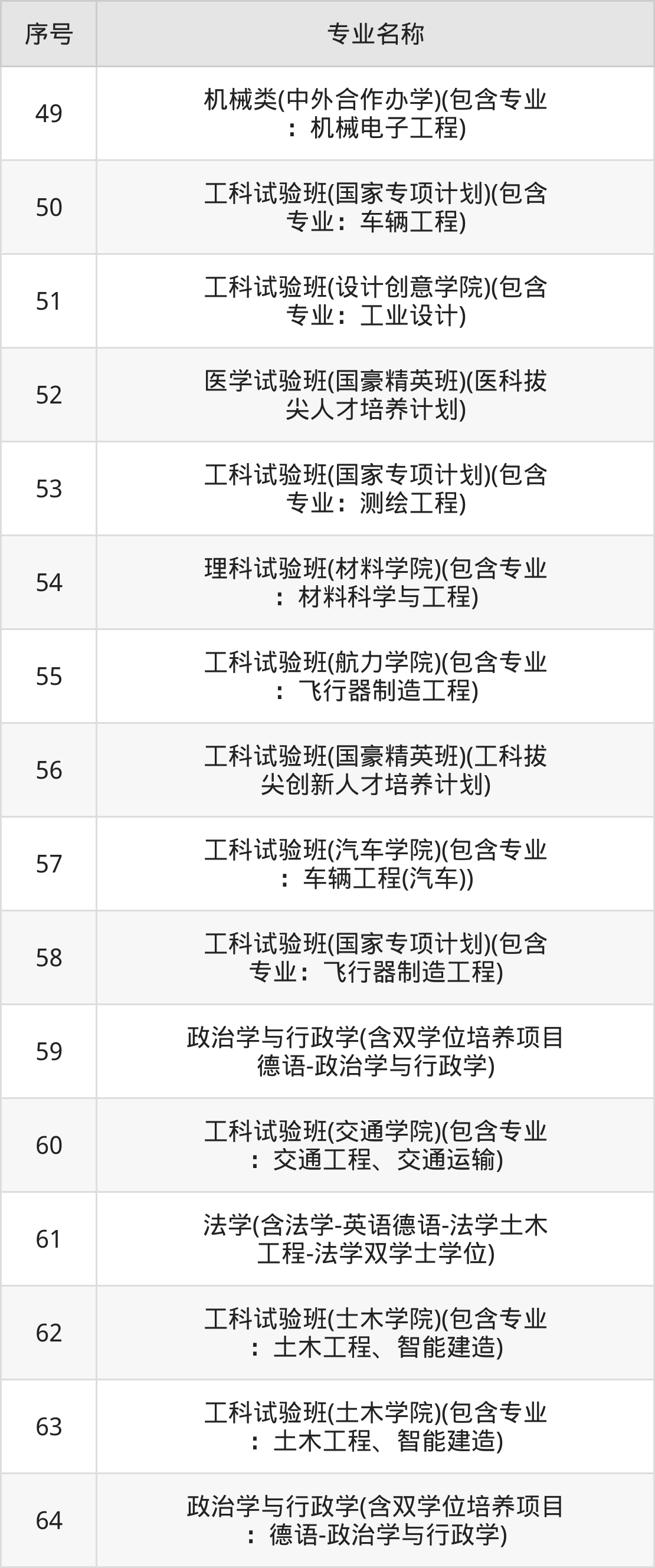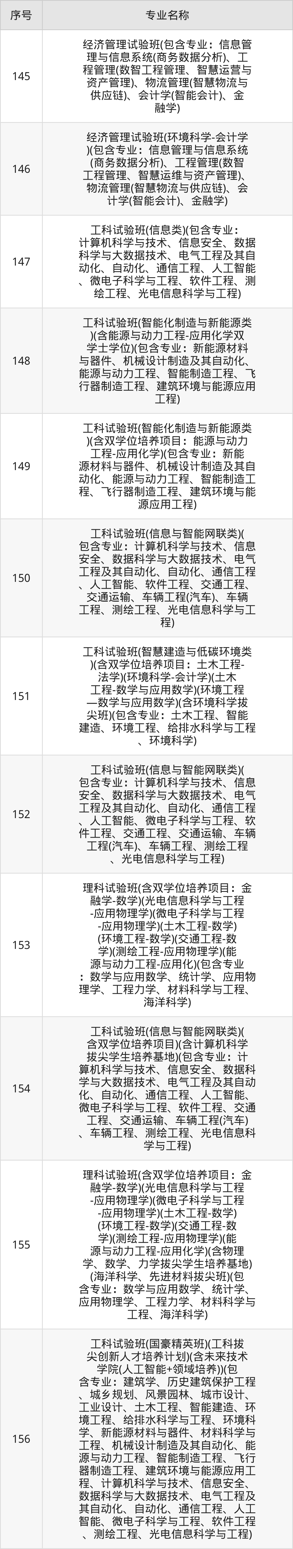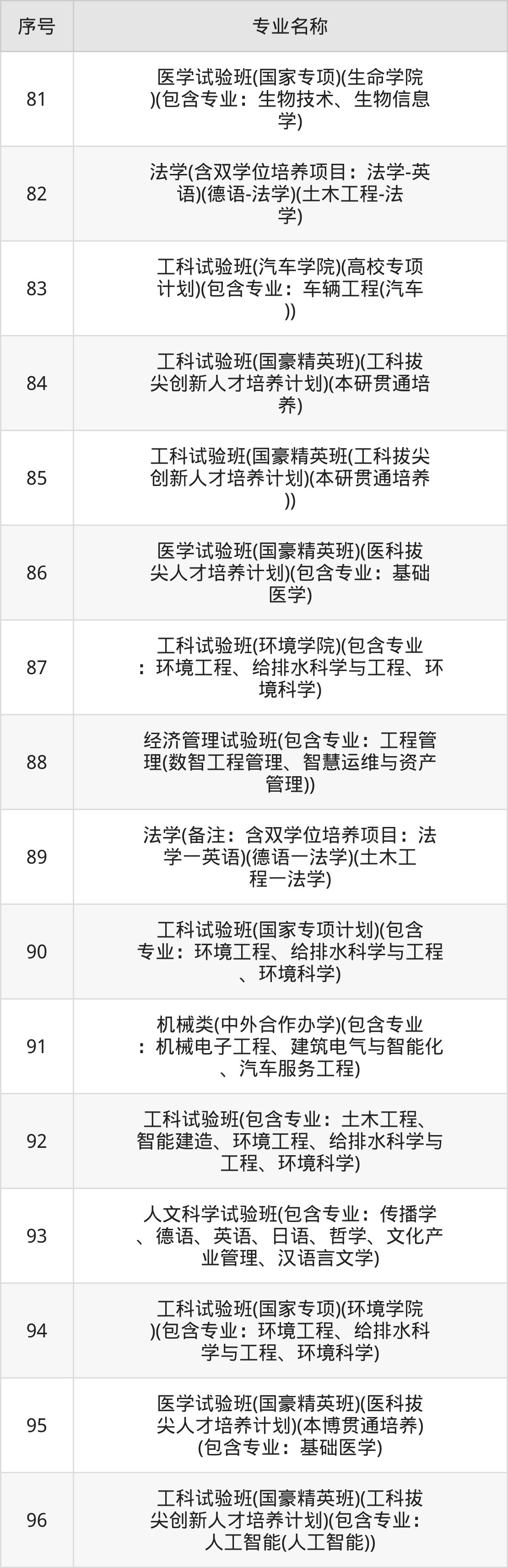 目前,同济大学公布了2024年本科招生专业,共156个。