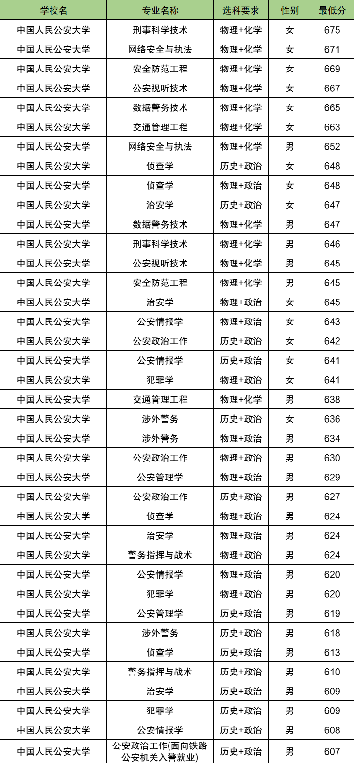 | 中国人民警察大学 | 03专业组 | 物理+化学 | 602 |