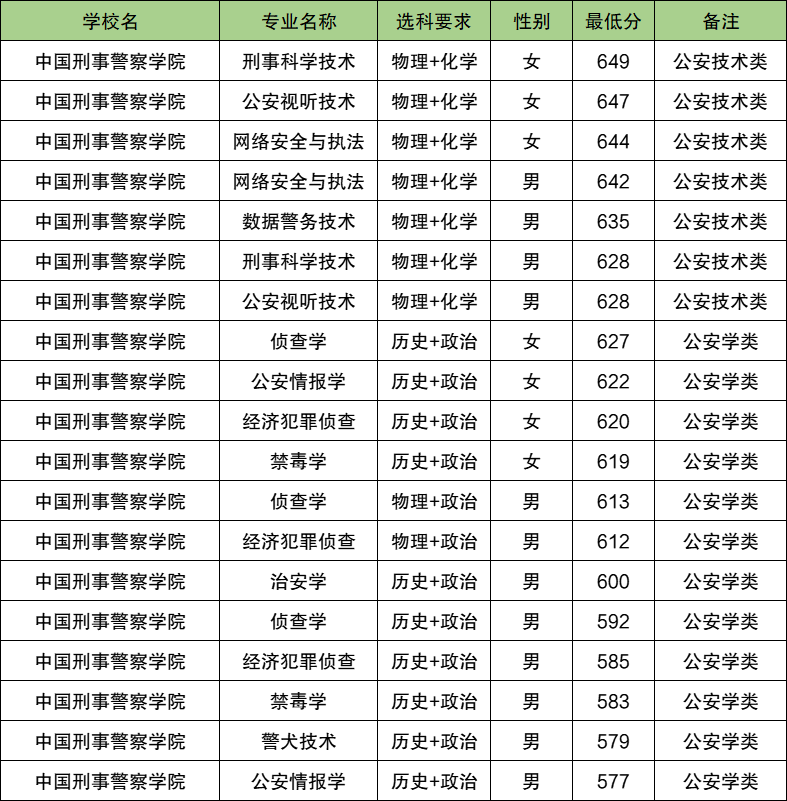 8、中国刑事警察学院:在江苏历史类最低577分、物理类最低612分。