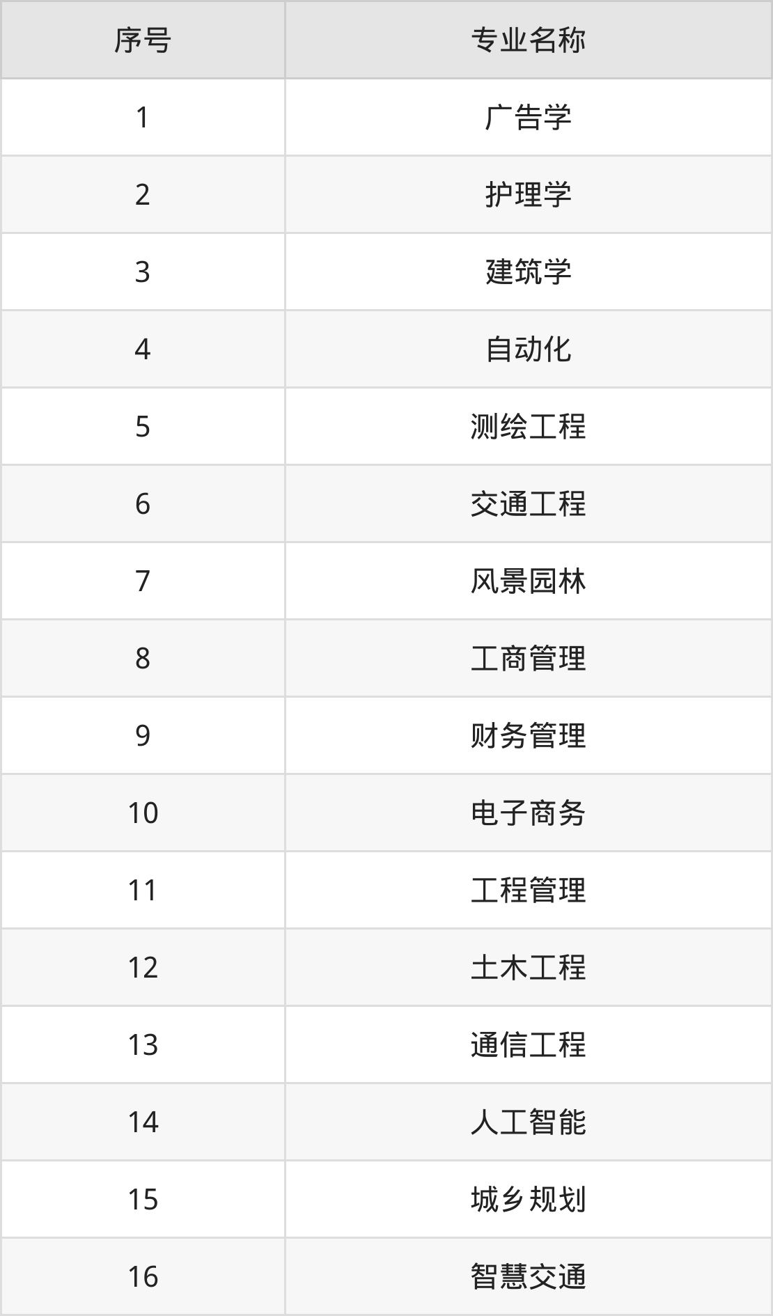 历史类(文科)本科招生专业:广告学、工程造价、工商管理、财务管理、电子商务、文化产业管理。