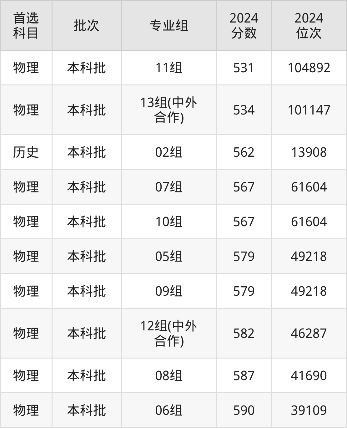 从2024年南京工业大学在江苏省内的录取分数线来看,本科批录取分数线都在530分以上,录取分数线最高的是06组,2024年最低分为590分;录取分数线最低的是11组,2024年最低分为531分。