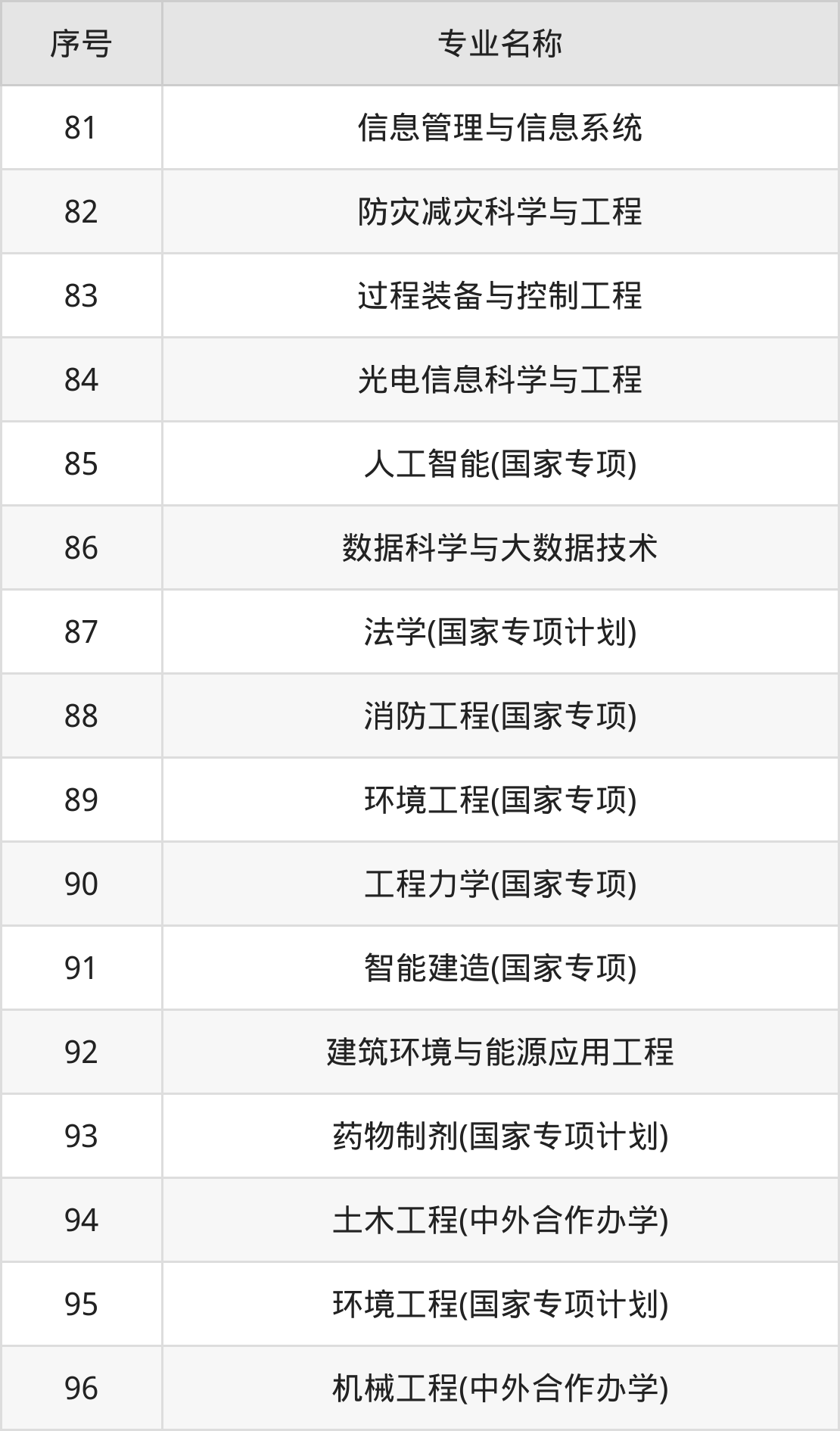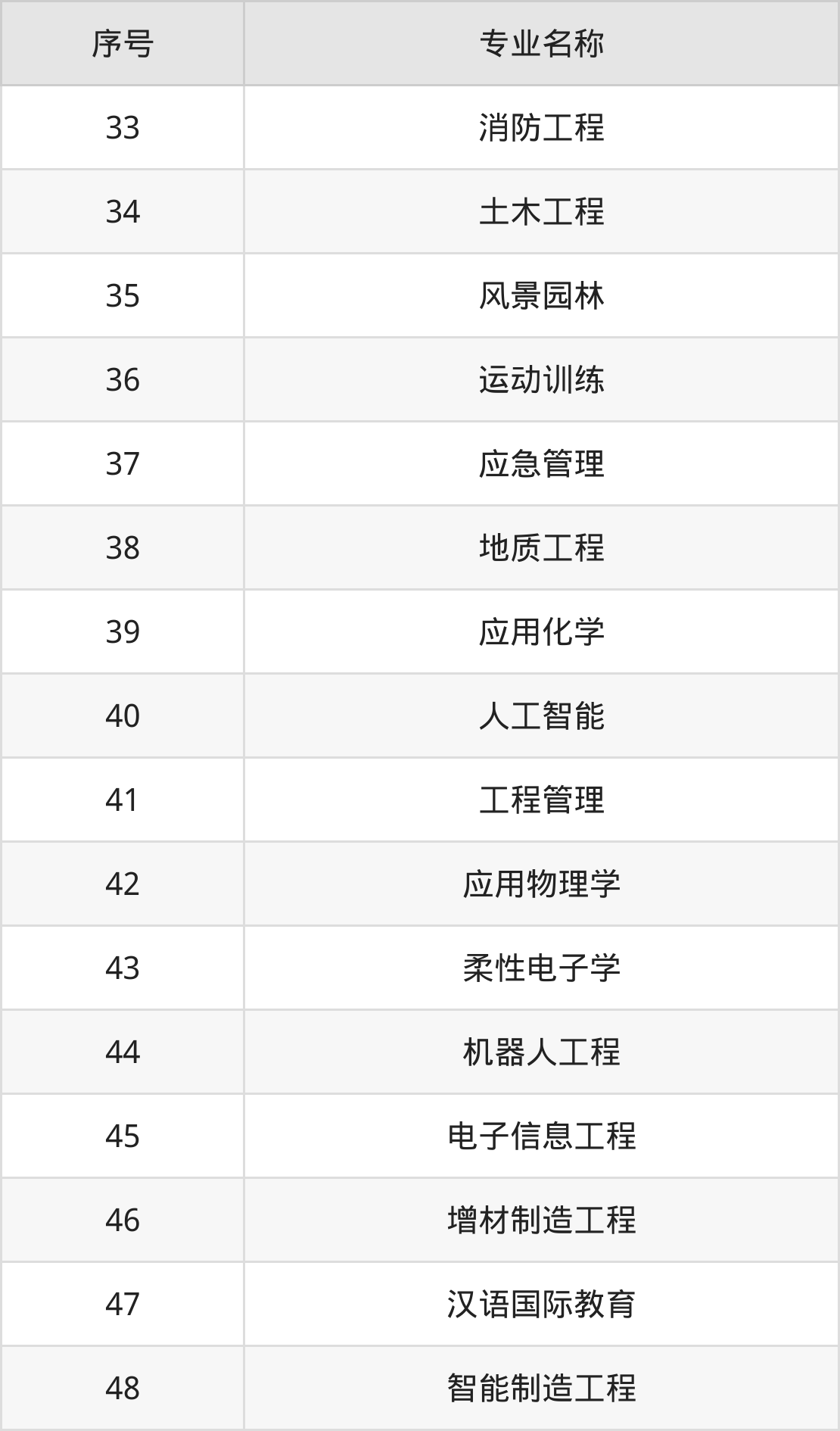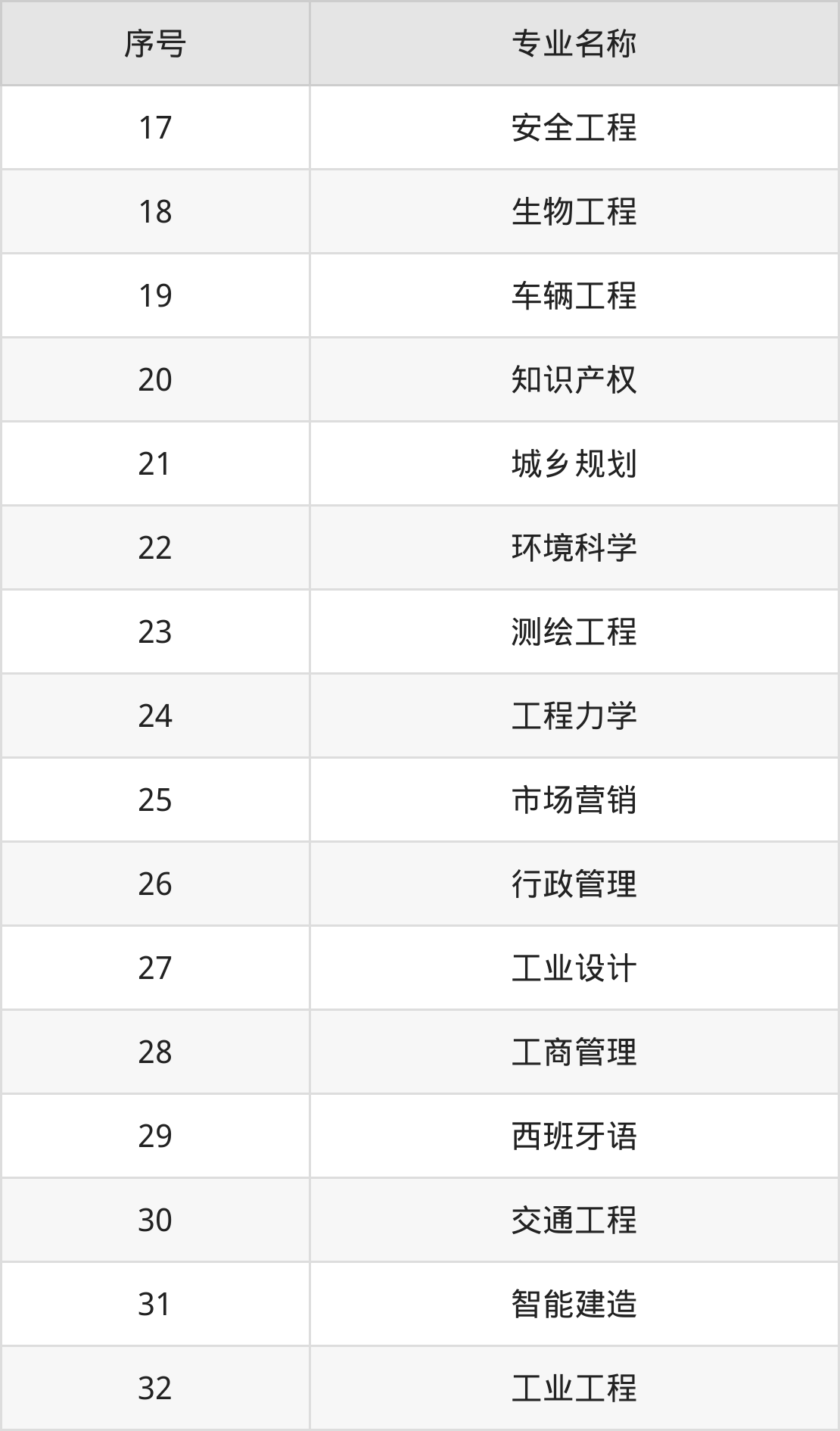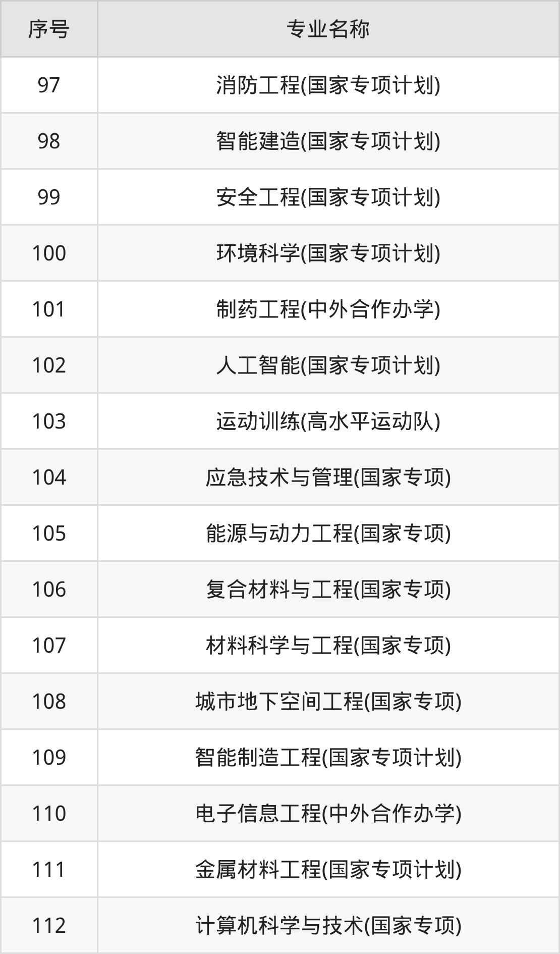 历史类(文科)本科招生专业:法学、德语、日语、英语、会计学、金融学、工业工程、知识产权、运动训练、工商管理等。