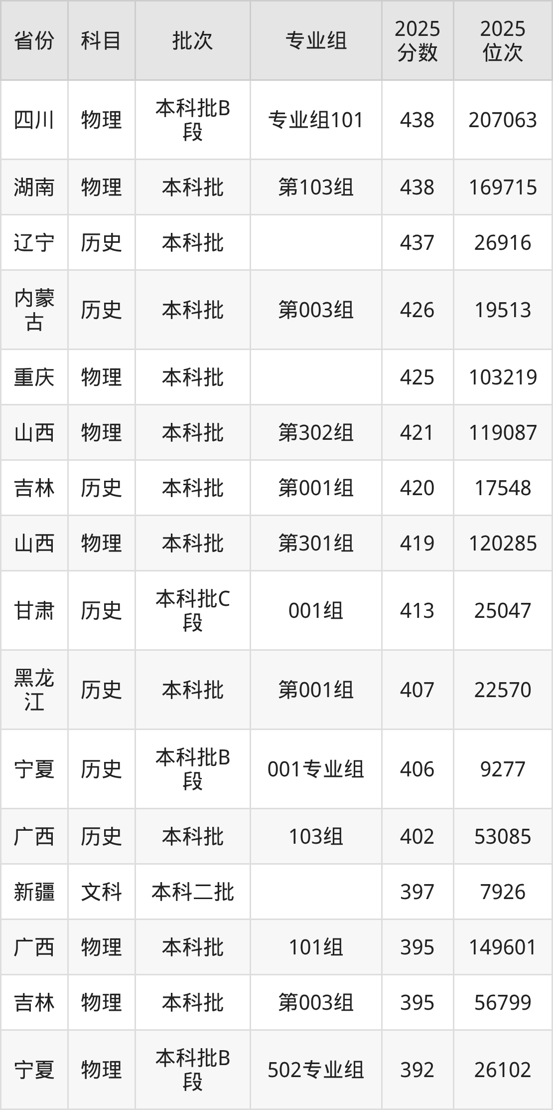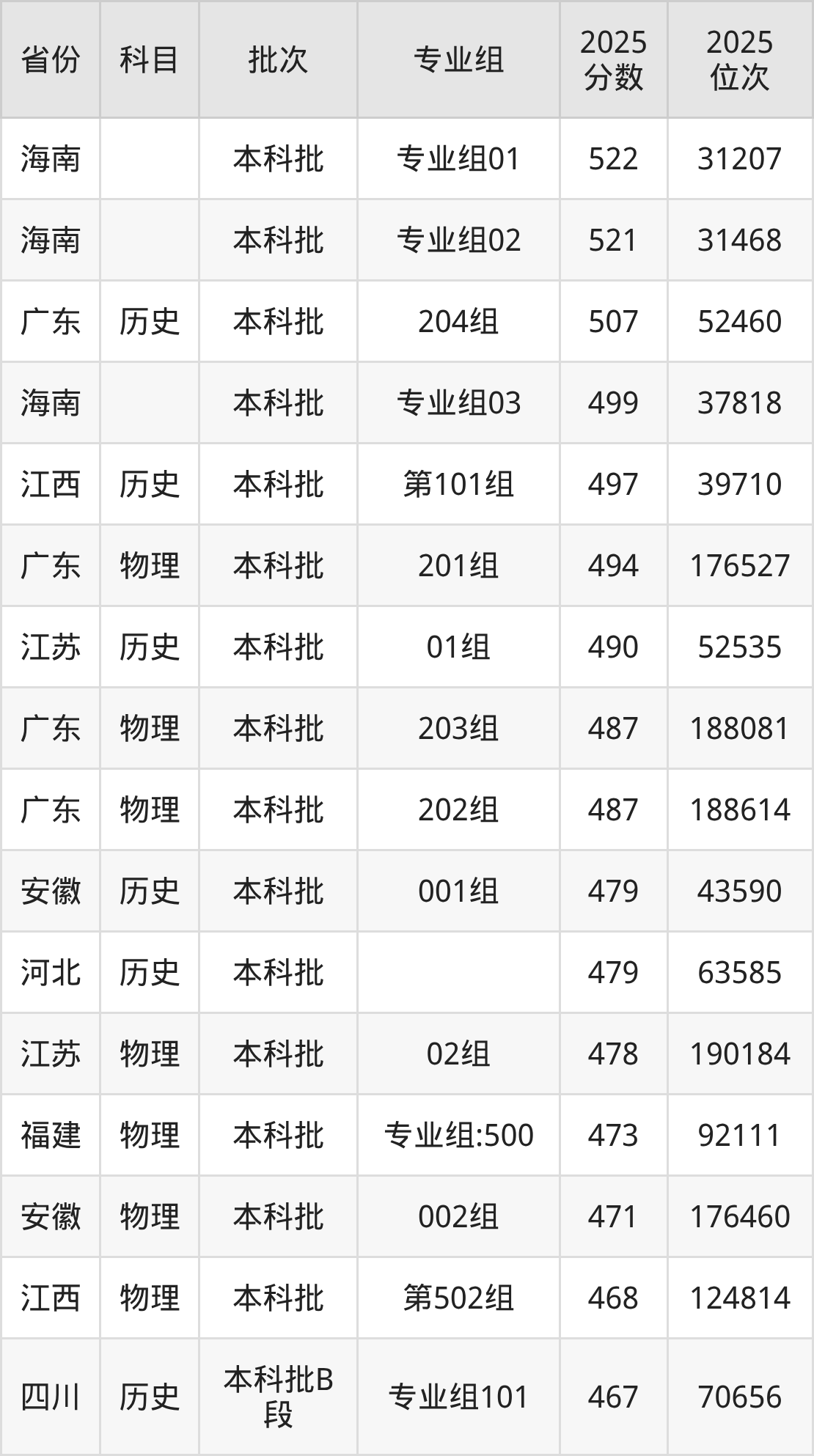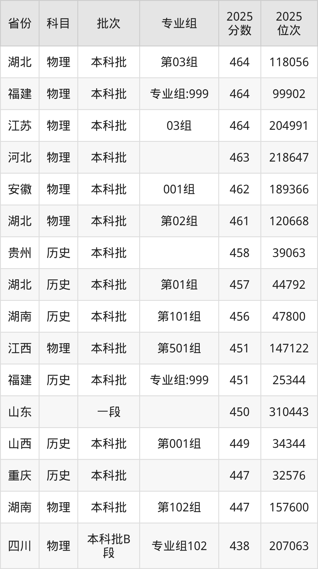 4、机械工程:452分、位次304855名;