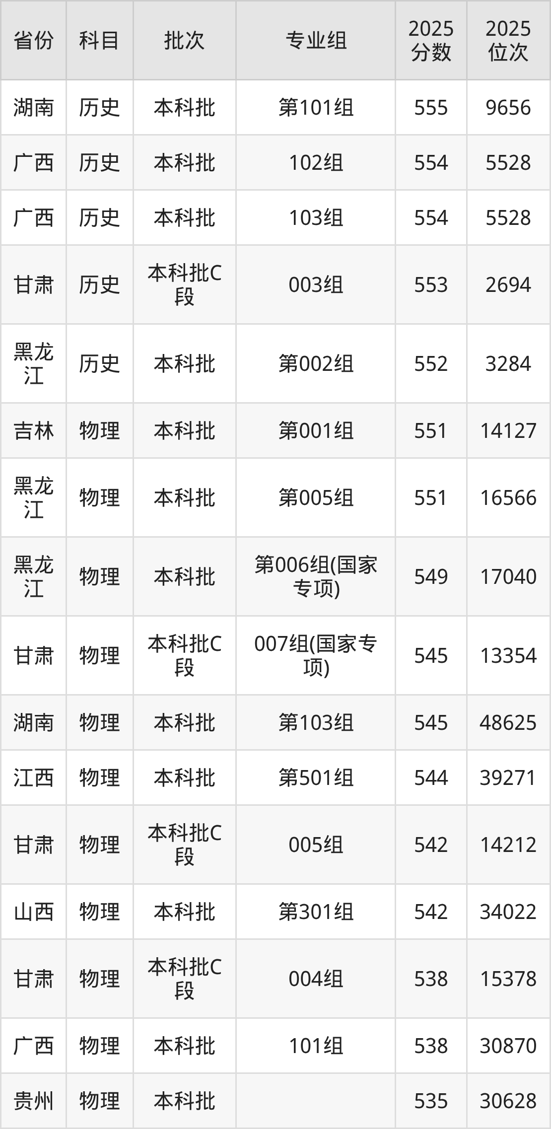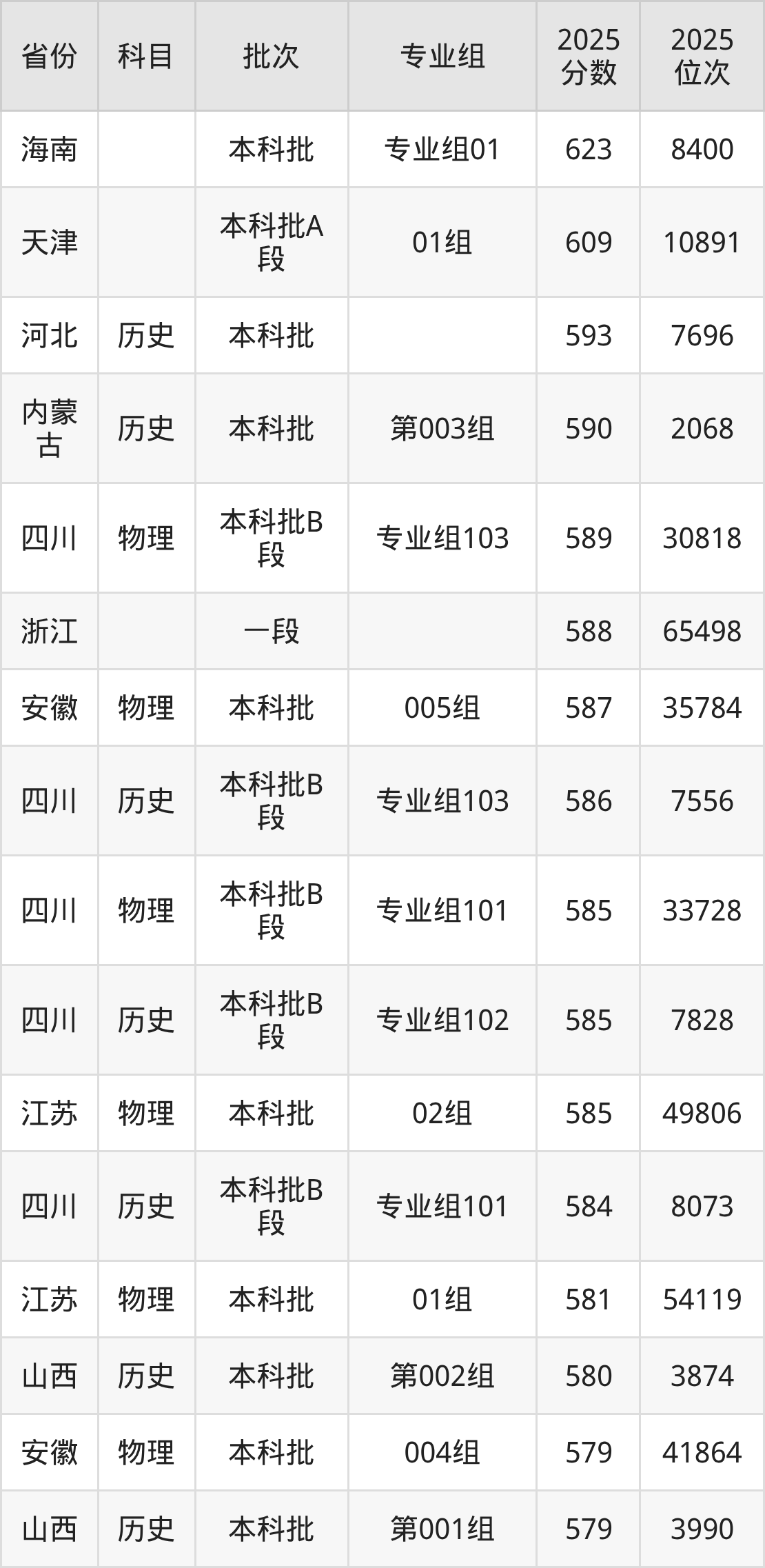 10、石油工程:579分、位次43065名;