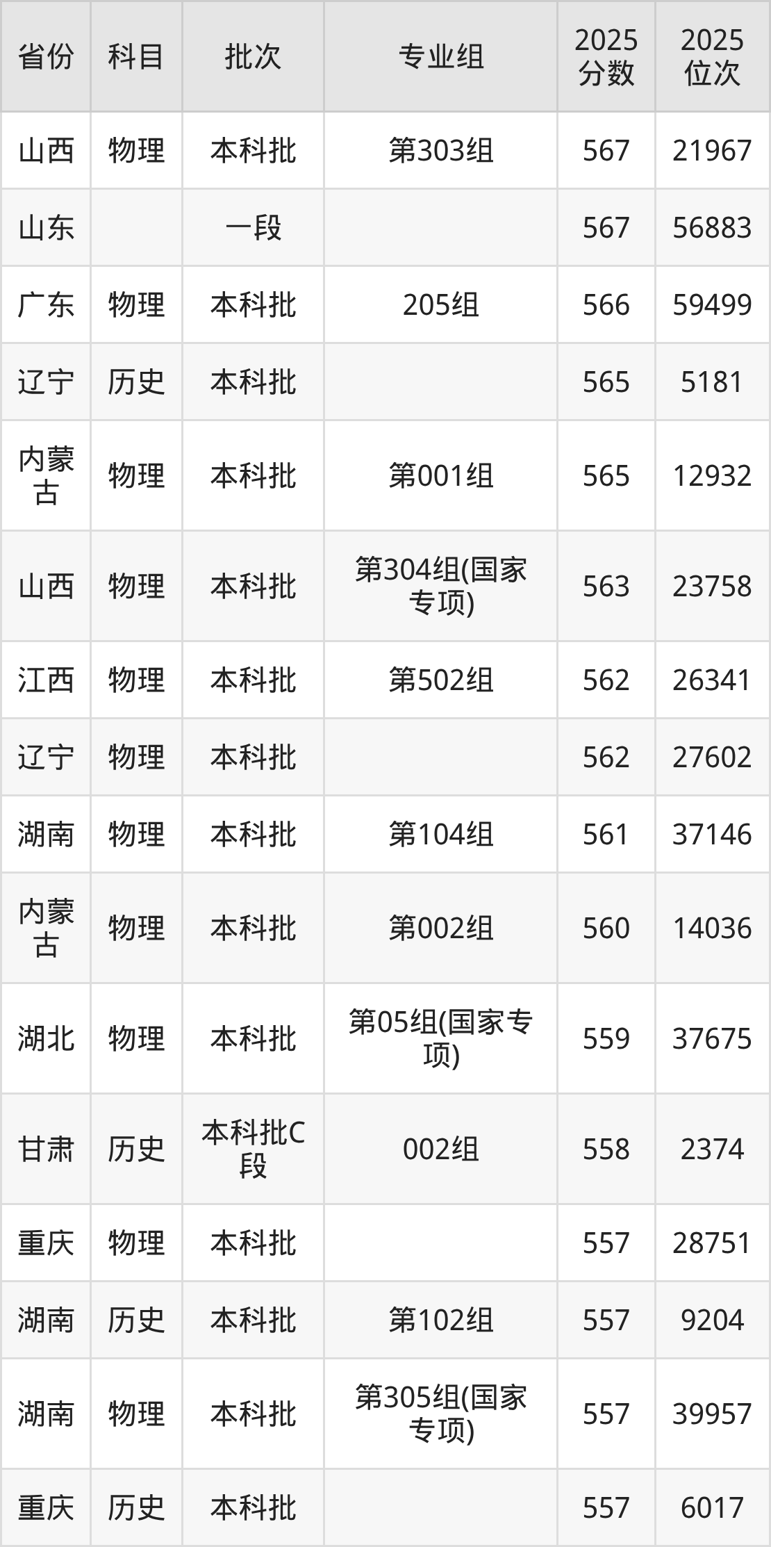 2、自动化:587分、位次35316名;