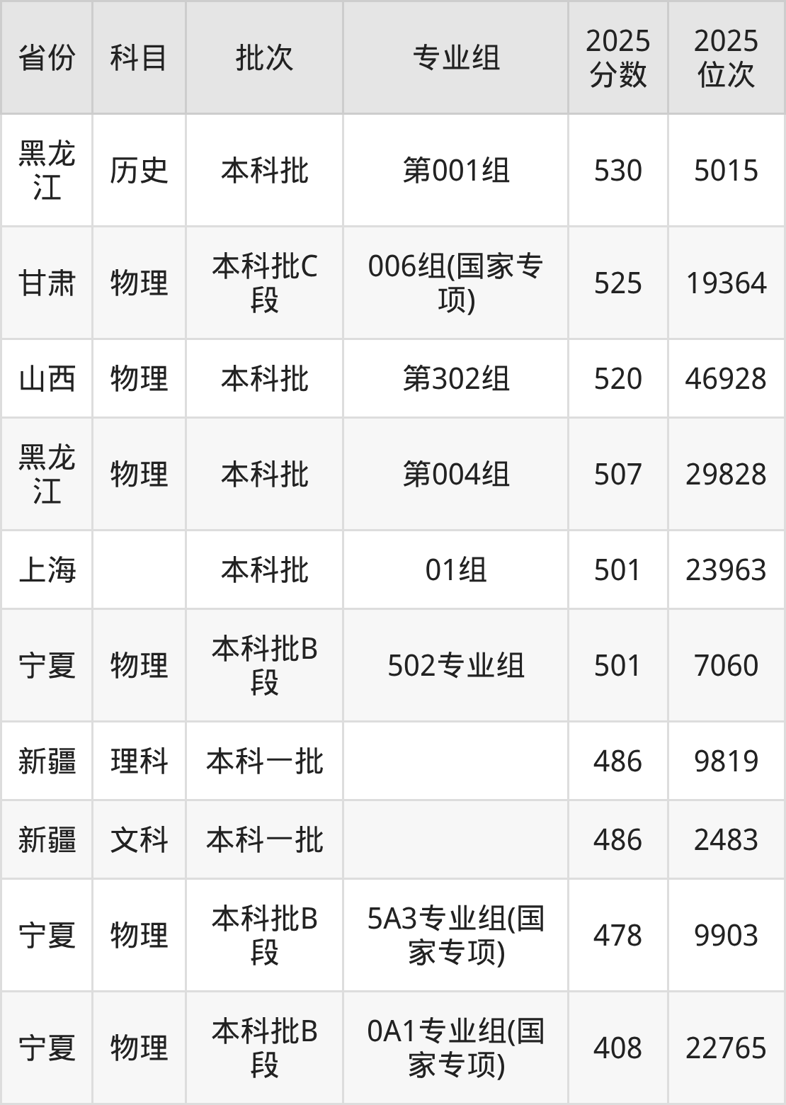 三、中国石油大学(北京)克拉玛依校区2025年录取分数线