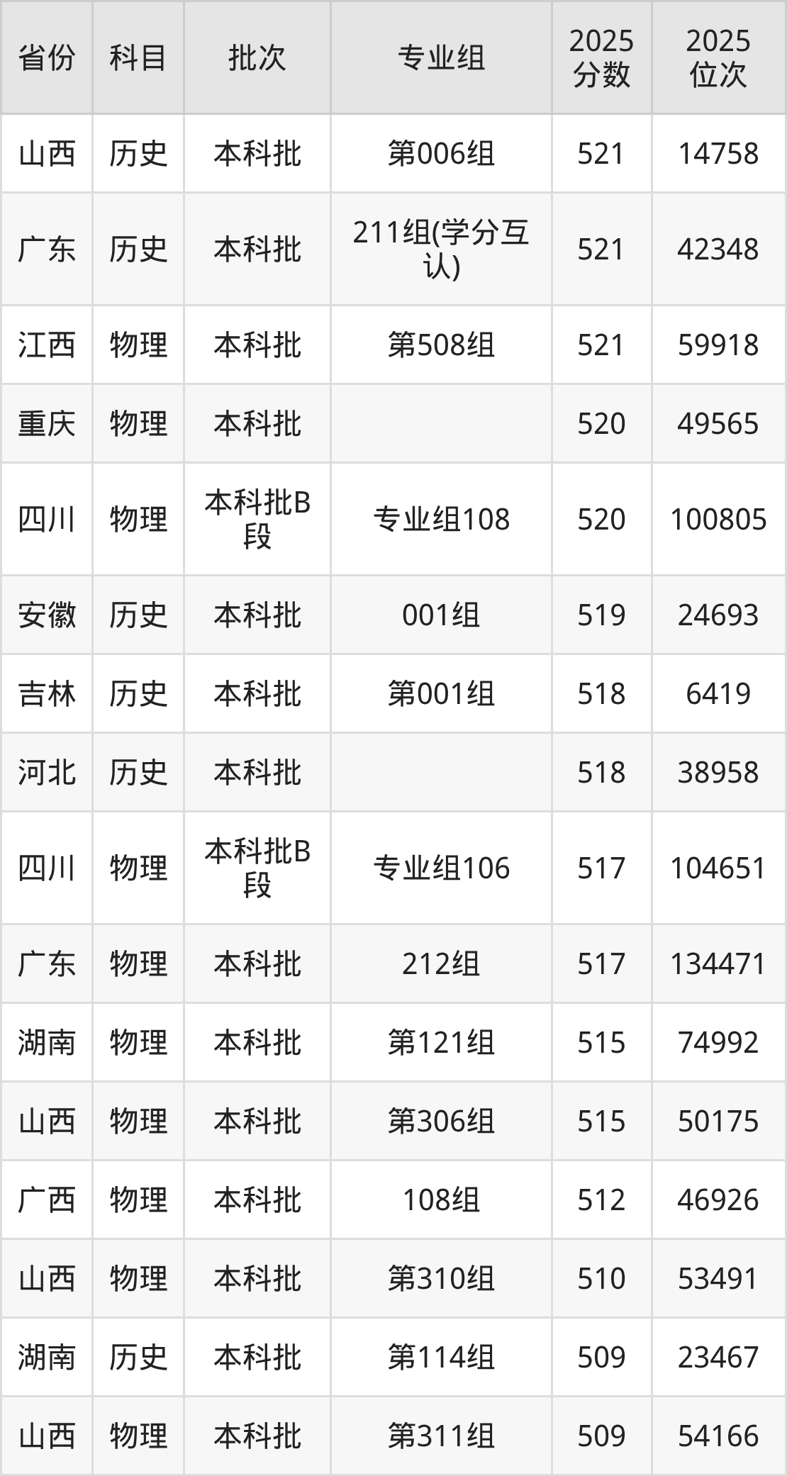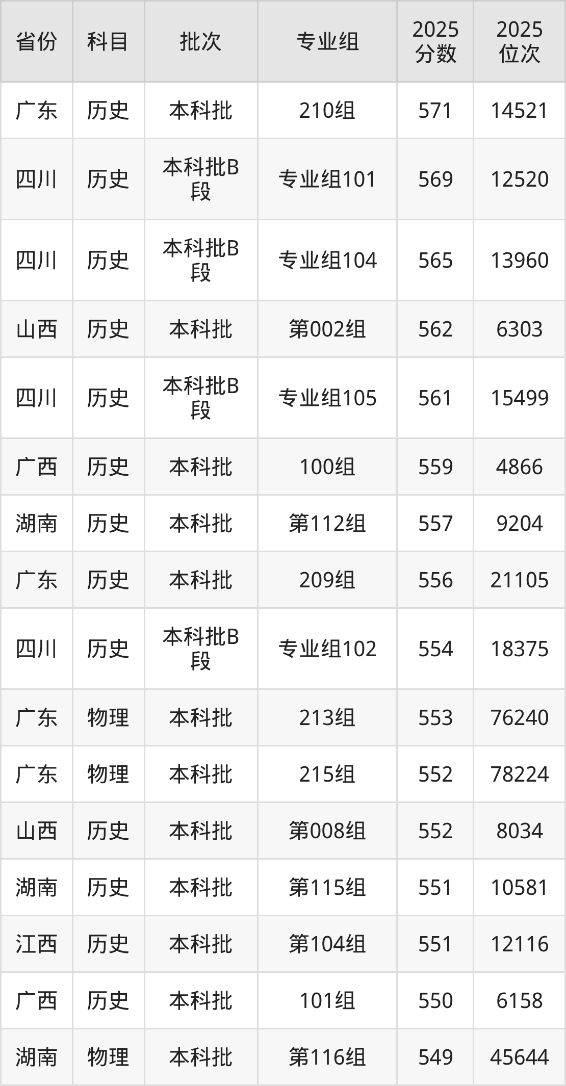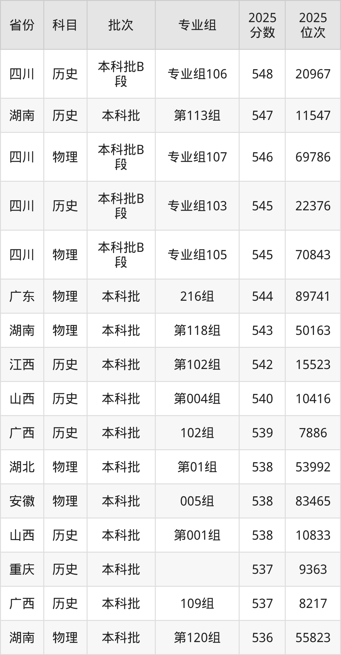 2、地理科学:539分、位次101967名;