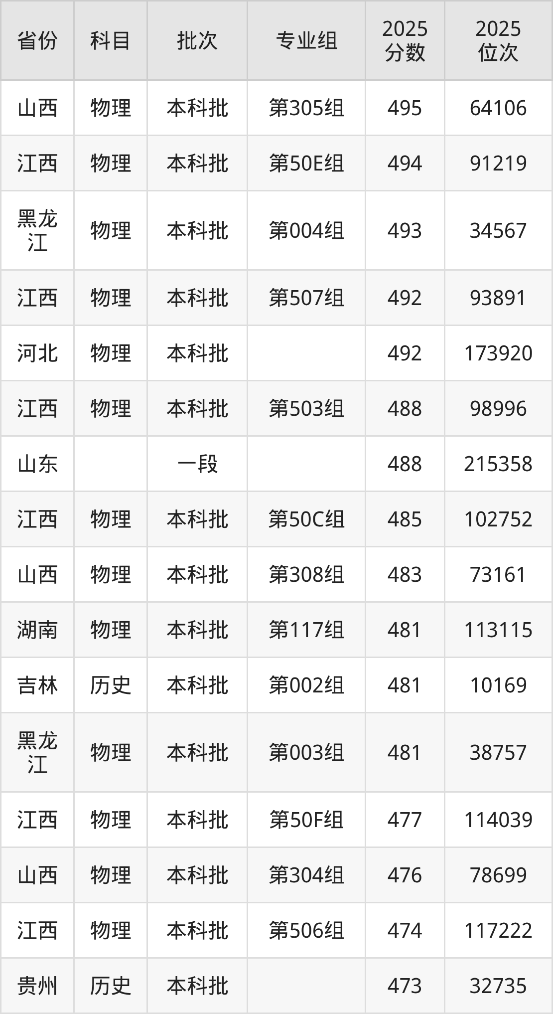 参考2025年山东省高考招录数据,按照分数线从高到低依次为大家展示贵州师范大学各个专业录取分数线。